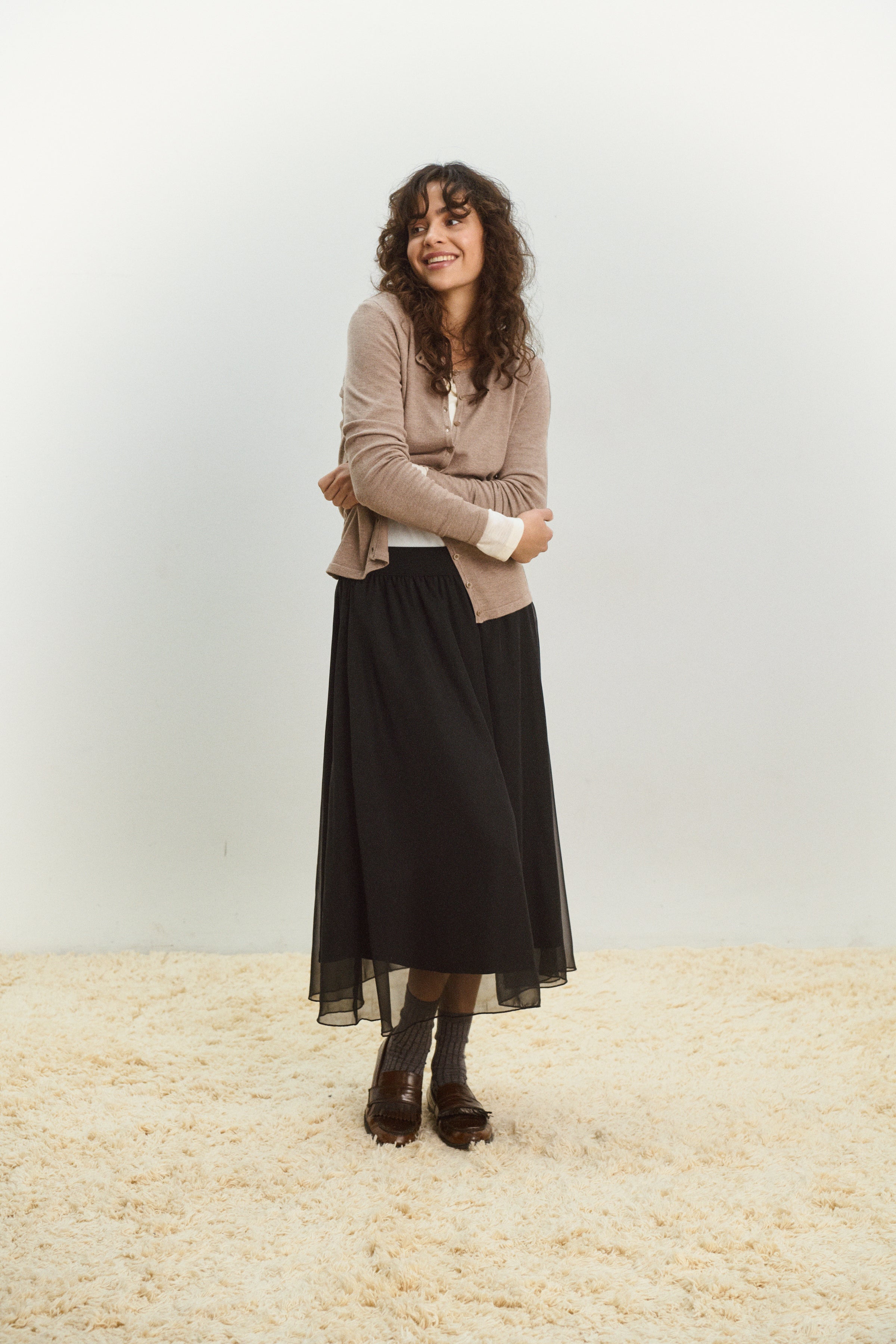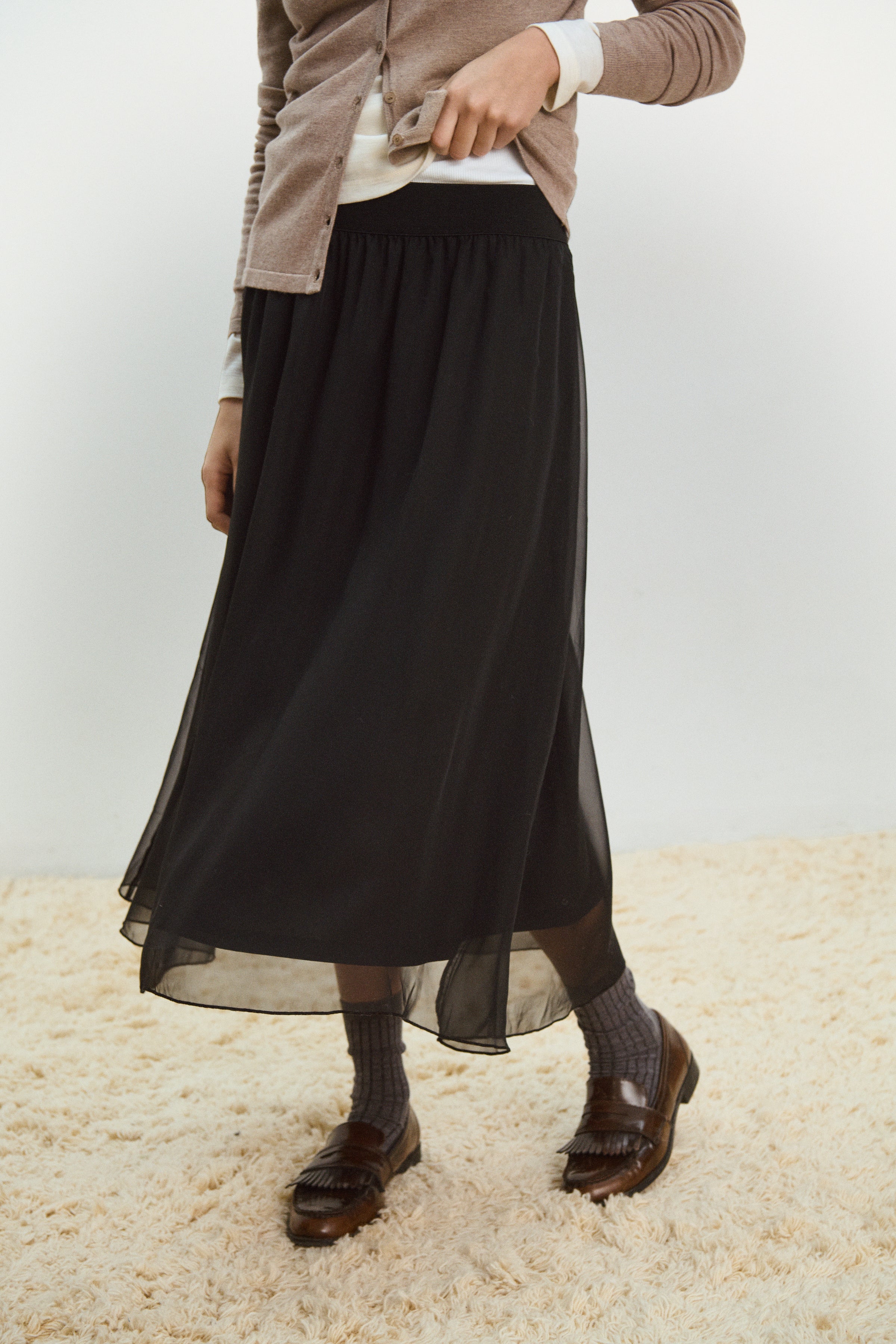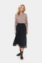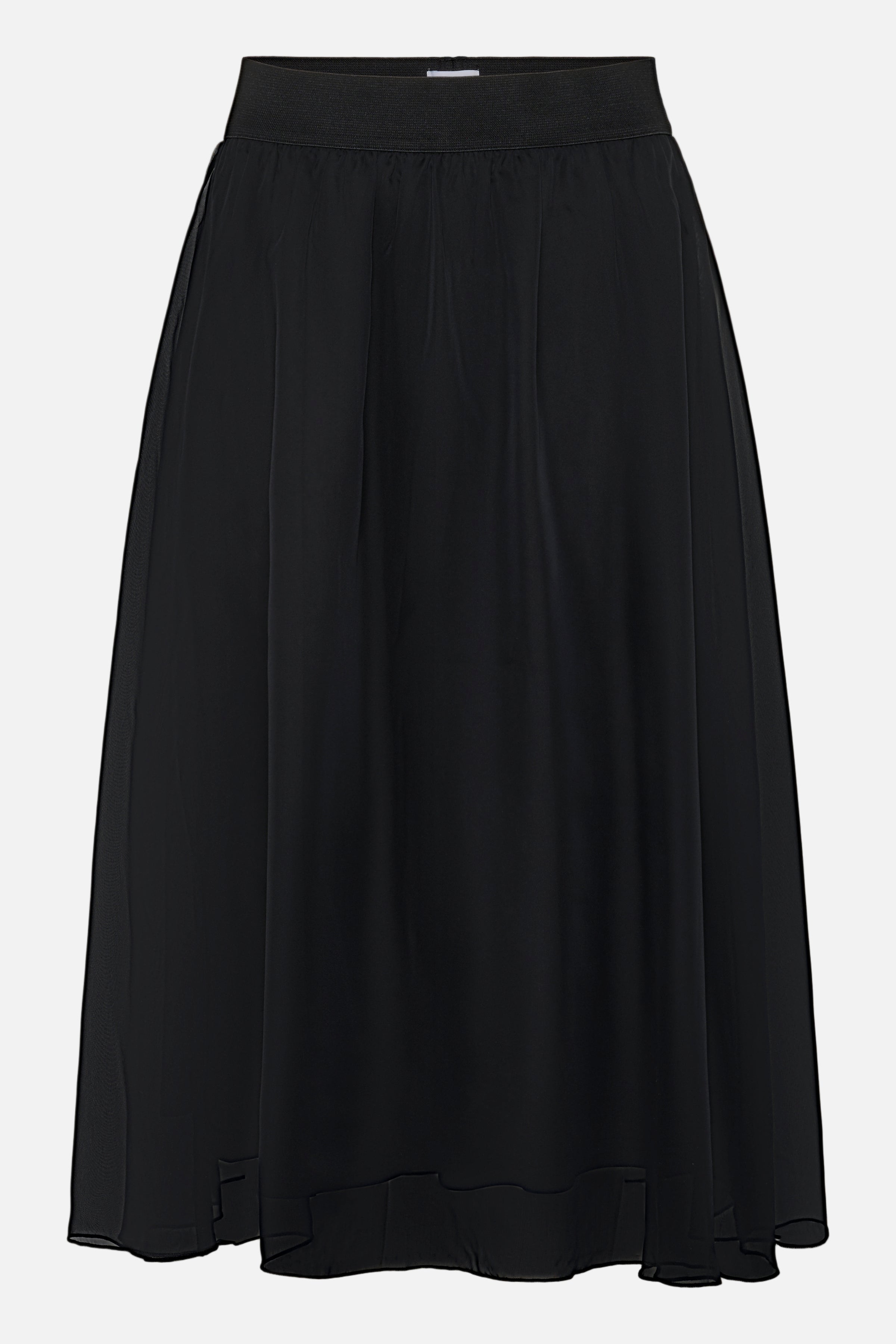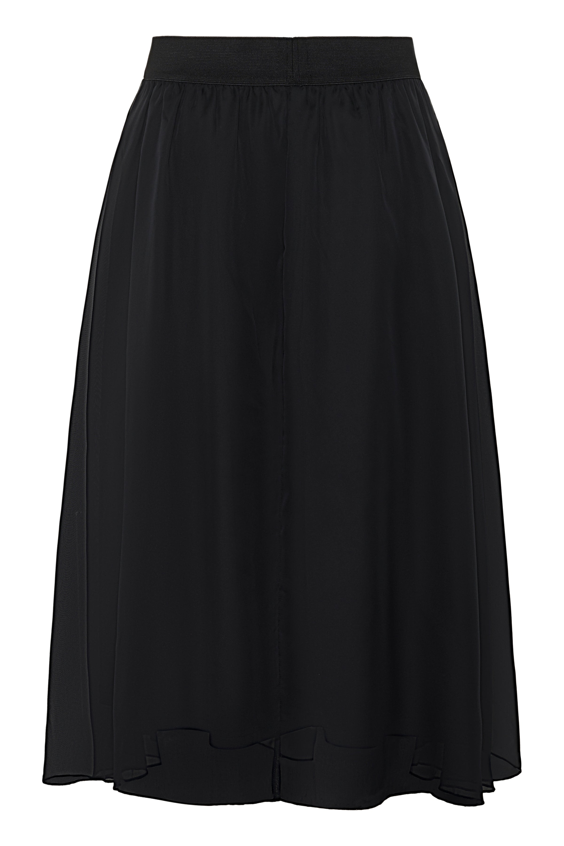 The Coral Skirt in classic Black by Saint Tropez is a timeless wardrobe staple designed for effortless elegance throughout the autumn–winter season. Crafted from lightweight chiffon, it features a comfortable high-waisted fit with an elasticated waistband. With its easy A-line silhouette and soft matching lining, this midi-length skirt delivers refined style with everyday comfort.