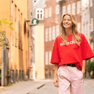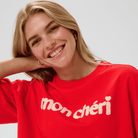 Bold in colour yet effortless in feel, the Panna Short Sleeve Sweatshirt in Fiery Red by Saint Tropez is designed with a relaxed, contemporary silhouette. The loose, boxy cut and elbow-grazing sleeves create an easy drape, while the textured “mon cheri” graphic at the centre adds a playful focal point. Crafted from organic cotton, it’s as comfortable as it is striking.