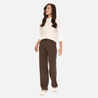 The Mila Pants in Fondue Fudge Melange by Saint Tropez are a chic wardrobe staple designed for both comfort and versatility. With their wide-leg silhouette and elastic waistband, they offer an effortless fit that works for everyday wear or dressed-up occasions. The rich chocolate tone brings a warm, seasonal twist to this modern classic.