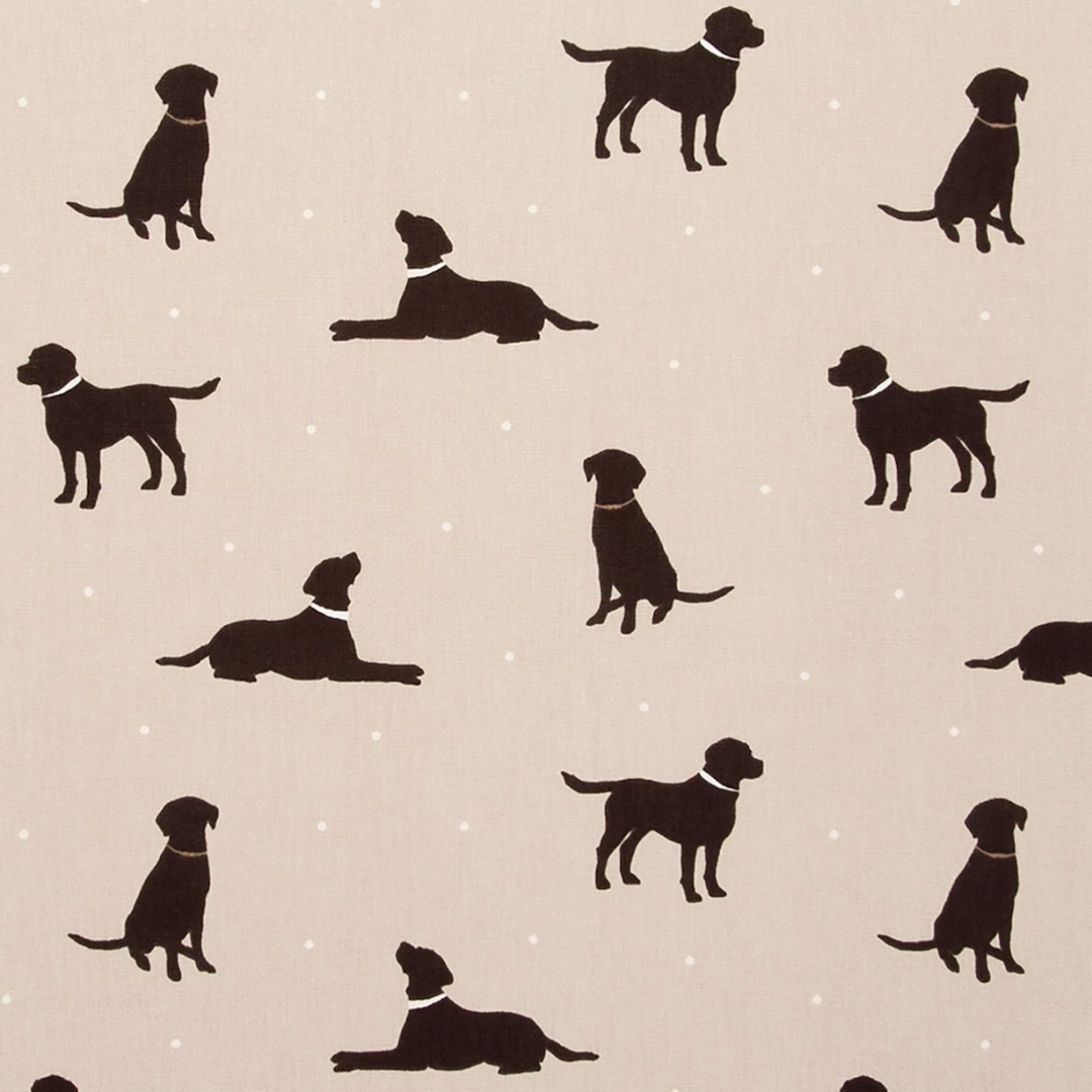 The Rover design by Studio G features cute labradors in various poses set on a natural linen background making it the perfect choice for dog lovers