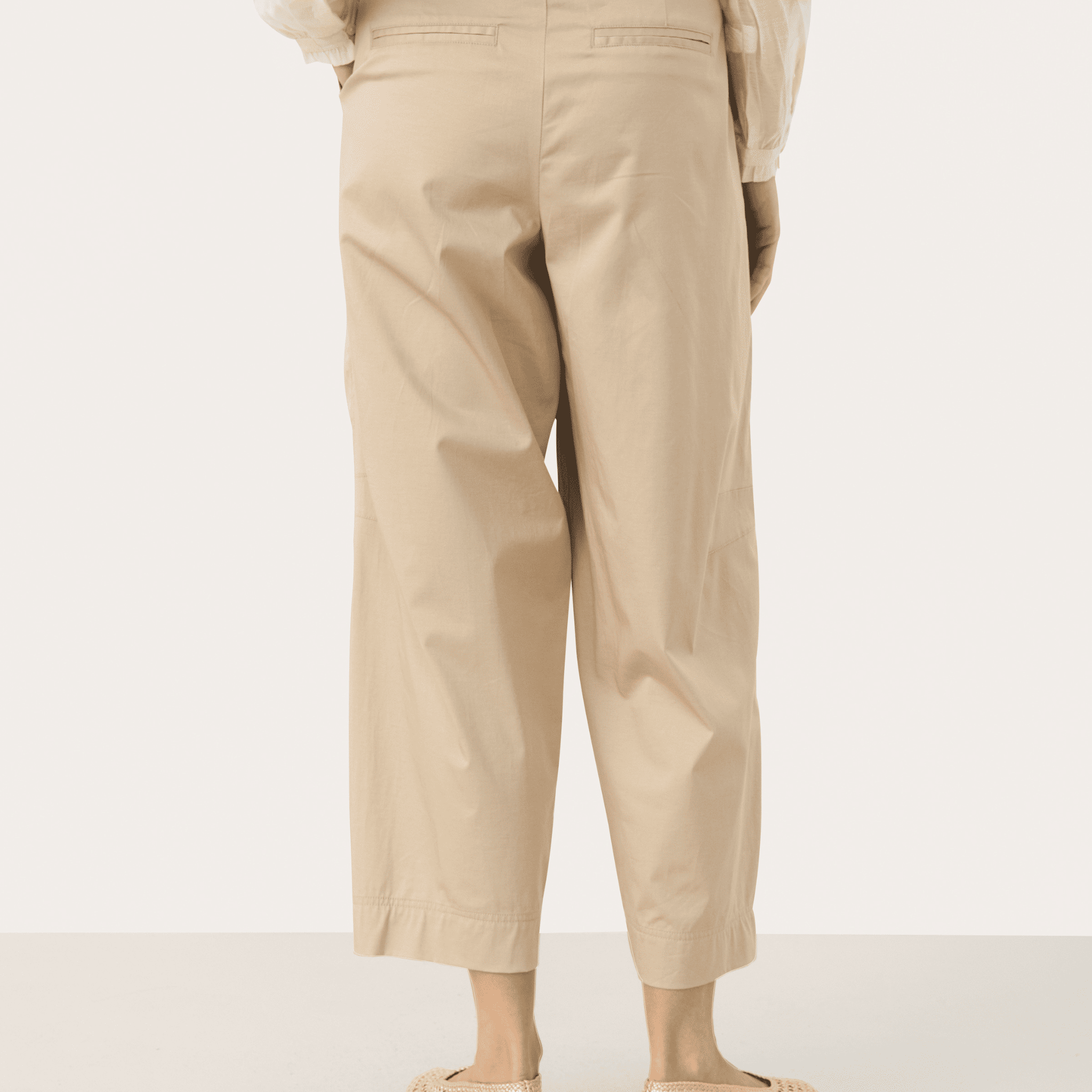 A relaxed wardrobe staple, the Ramize Chino Trousers by Part Two offer effortless style with everyday ease. Cut from a soft cotton blend, they feature a loose, cropped silhouette with tailored details like pressed pleats and turn-up hems. Whether you're dressing for the office or a laid-back day out, these versatile trousers are a chic, comfortable choice.