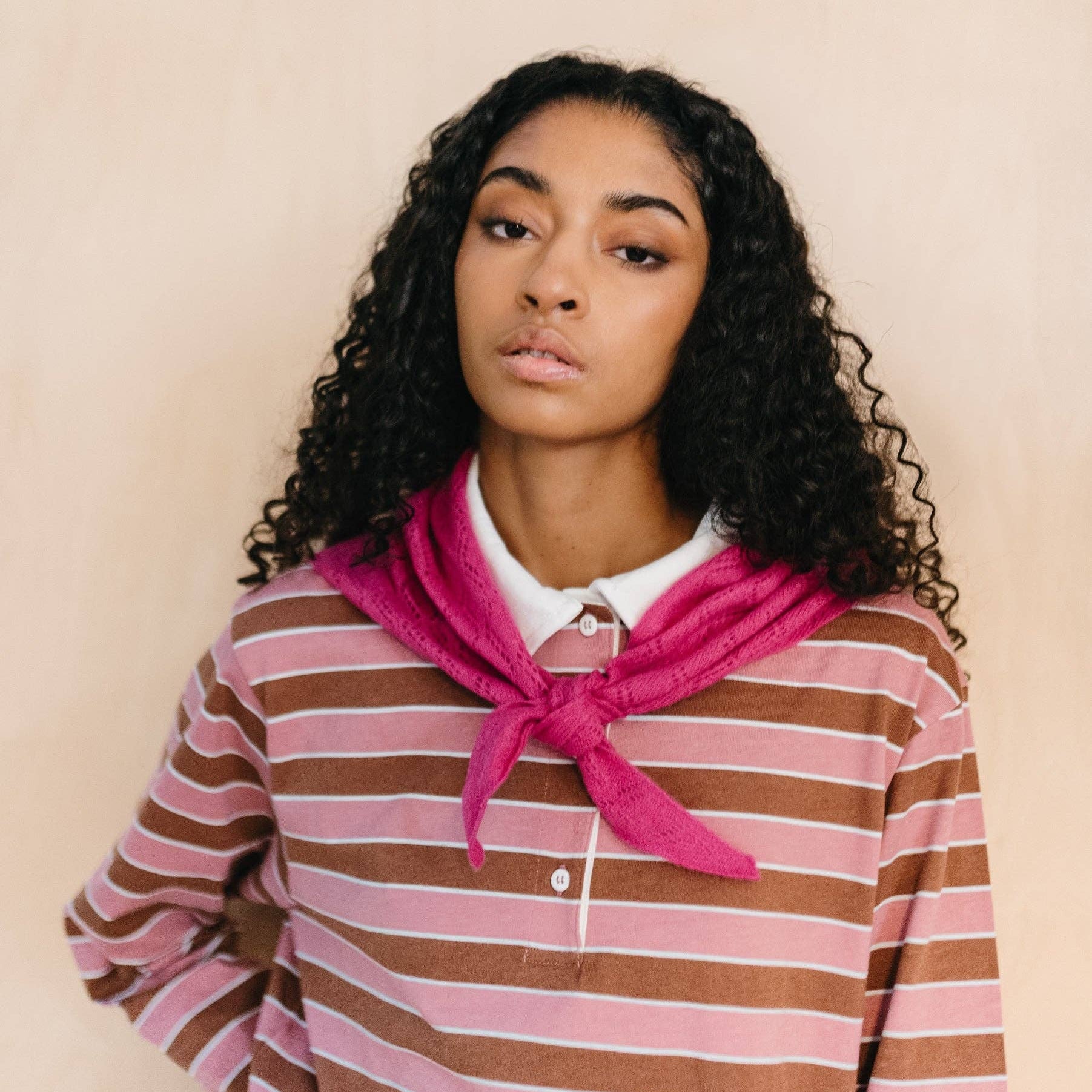TBCo Merino Wool Triangle Scarf | Magenta Pointelle