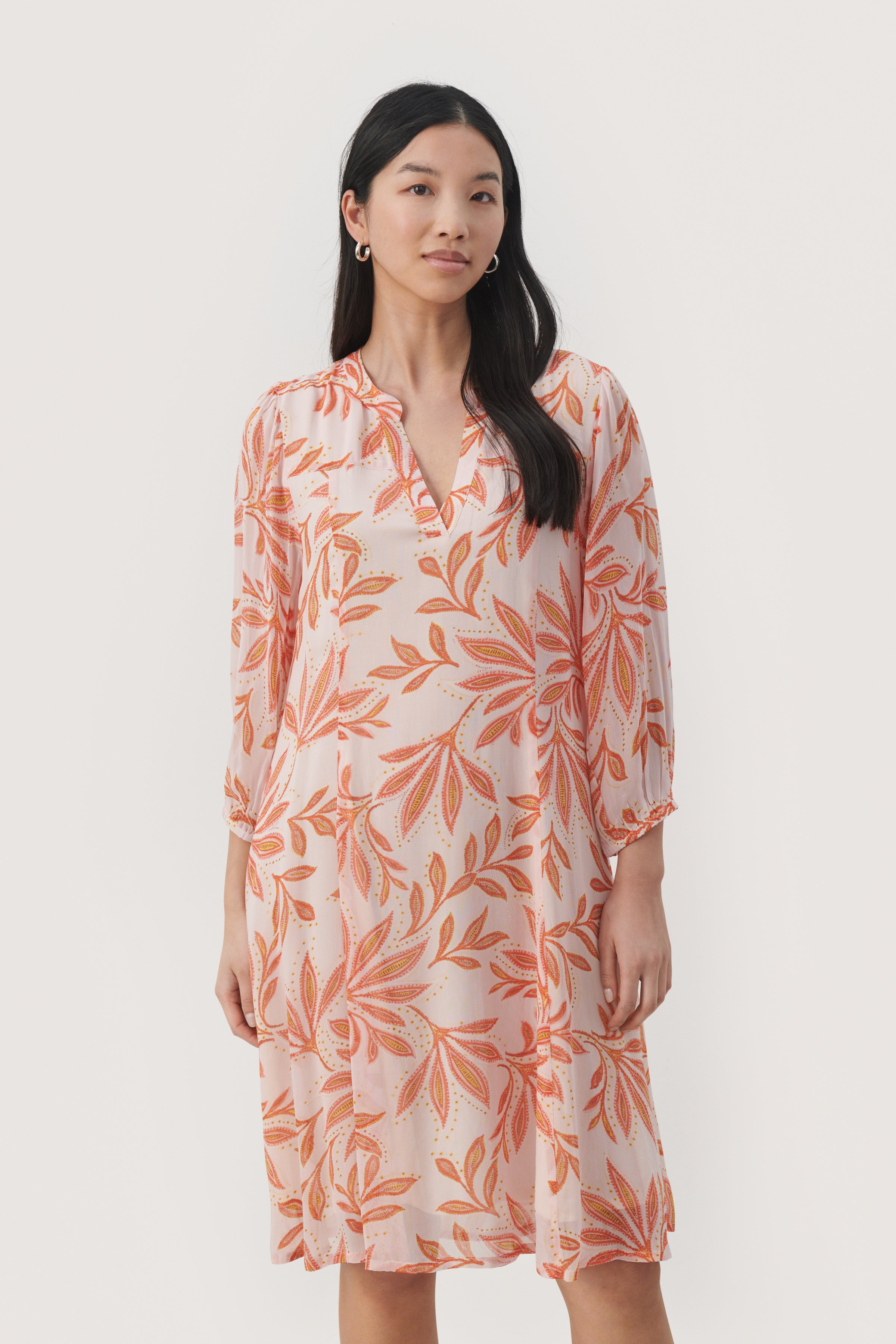 The Botelle Dress by Part Two is a versatile and effortlessly stylish piece that seamlessly transitions from day to night. Designed with a flattering v-neck and 3/4 sleeves, this dress offers the perfect blend of comfort and elegance. Its lined design adds an extra layer of convenience and modesty, making it a practical and chic option for any occasion.