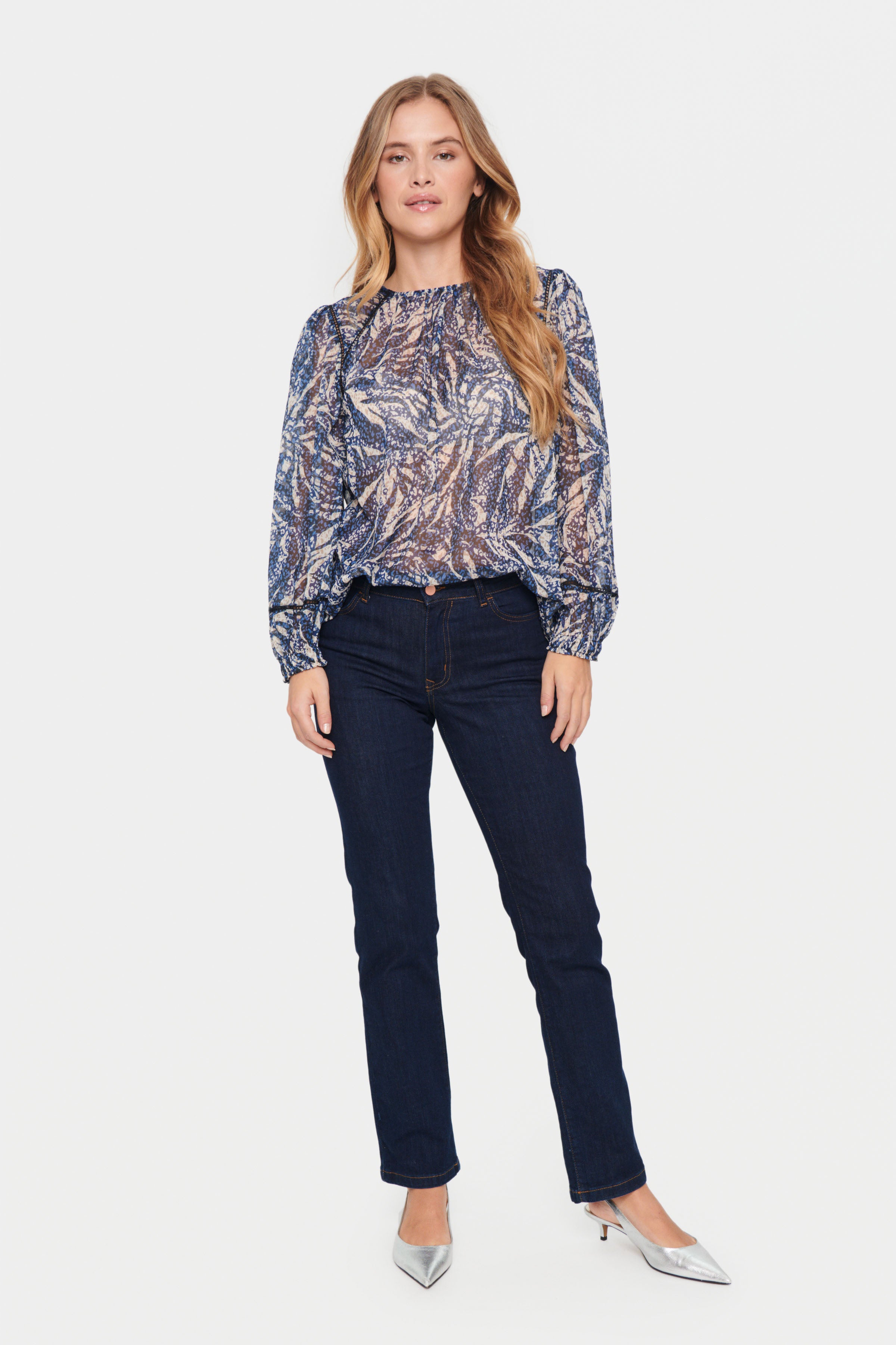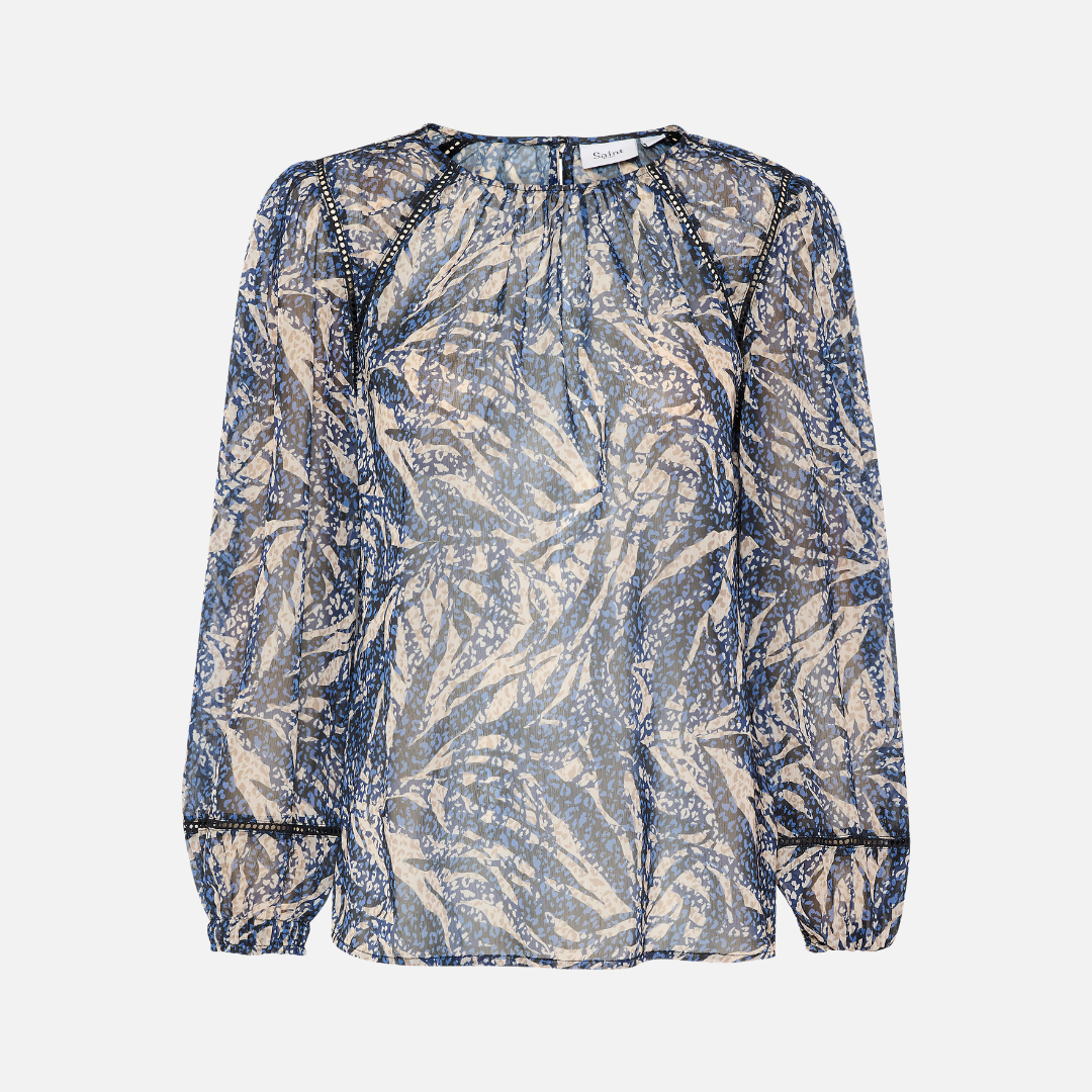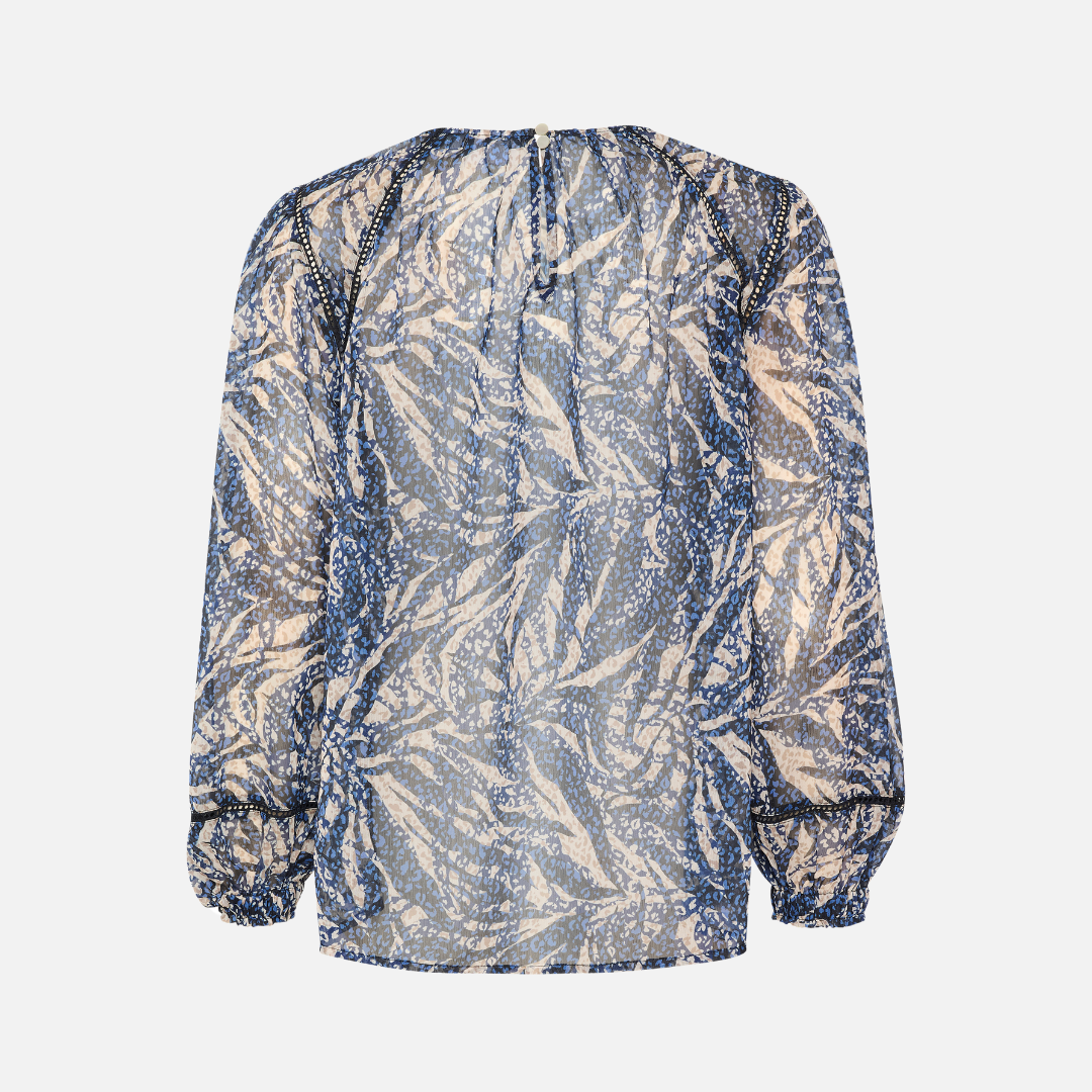 Chante Long Sleeve Chiffon Blouse | Black Zebra Leaves