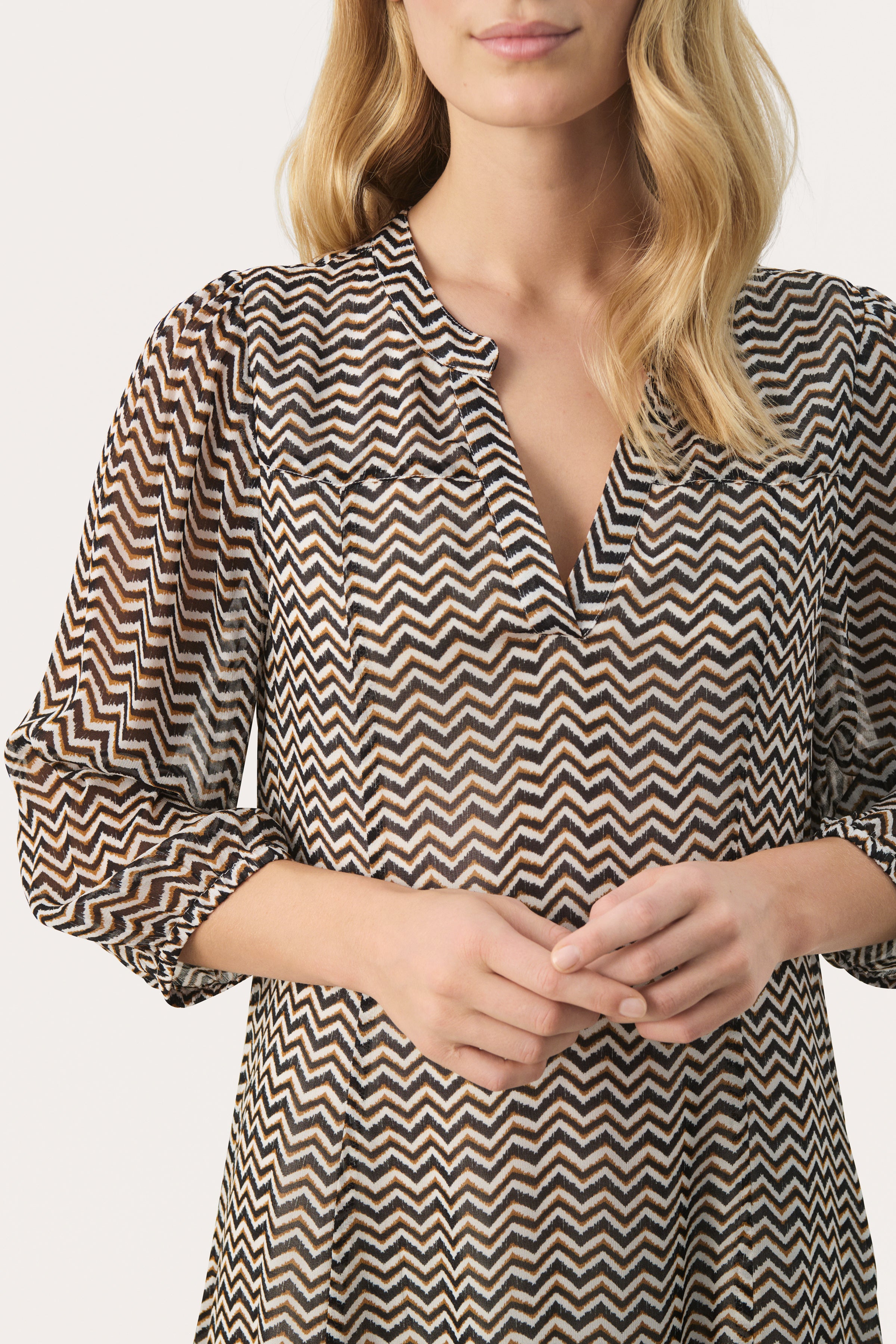 Experience the perfect blend of style and fun with the Jelina Dress from Part Two! This relaxed-fit dress features a striking zigzag print that adds a playful and bold touch to your wardrobe. Designed by Part Two, renowned for their premium and on-trend pieces, this dress is guaranteed to turn heads and make a statement wherever you go.