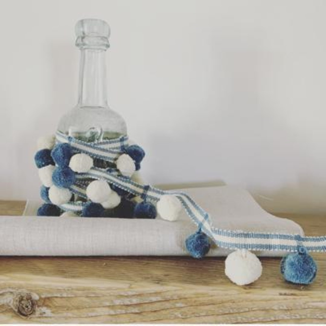The pretty Dual Colour Pom Pom trimming from Olive & Daisy is perfect for trimming cushions, curtains, blinds, home accessories or craft projects. This trimming comes on matching braid and is available in 11 colourways to complement their gorgeous range of linen fabrics.