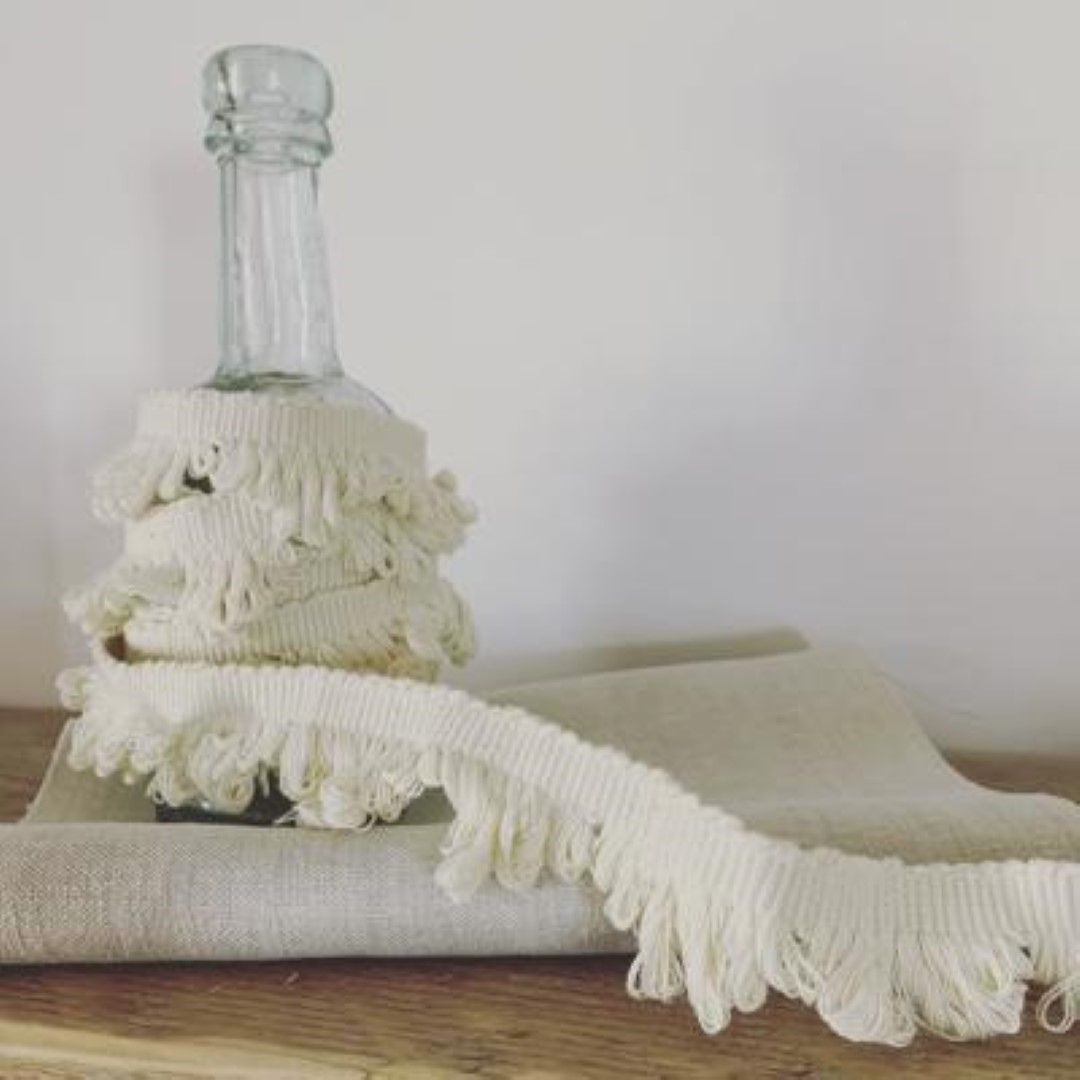 The pretty Fan Edge Fringing from Olive & Daisy is perfect for trimming cushions, curtains, blinds, home accessories or craft projects. This trimming comes on matching braid and is available in 4 colourways to complement their gorgeous range of linen fabrics.