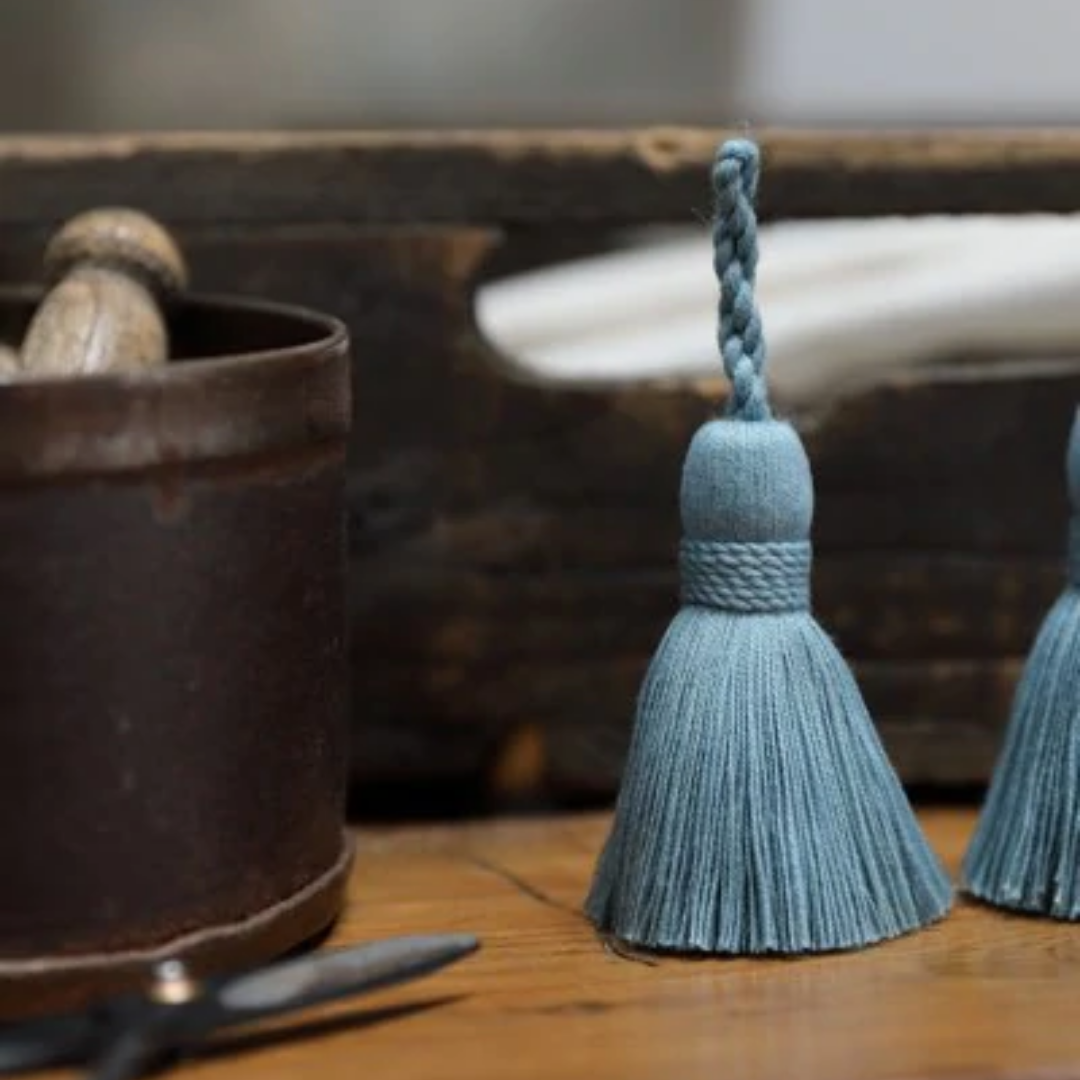 We love these colourful Key/Cushion Tassels from Olive & Daisy. They are the perfect way to add a touch of glamour to a cushion, table runner or craft project. Key tassels are great way of accenting cabinet doors, door knobs or upholstery. This trimming is available in 6 colourways is perfect to to complement their gorgeous range of linen fabrics.