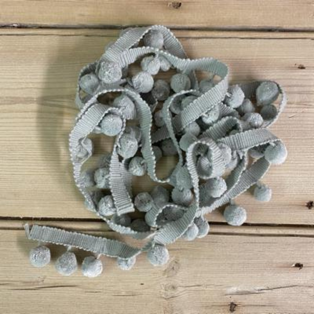 The pretty Mini Pom Pom trimming from Olive & Daisy is perfect for trimming cushions, curtains, blinds, lampshades, home accessories or craft projects. This trimming comes on matching braid and is available in 4 colourways to complement their gorgeous range of linen fabrics.