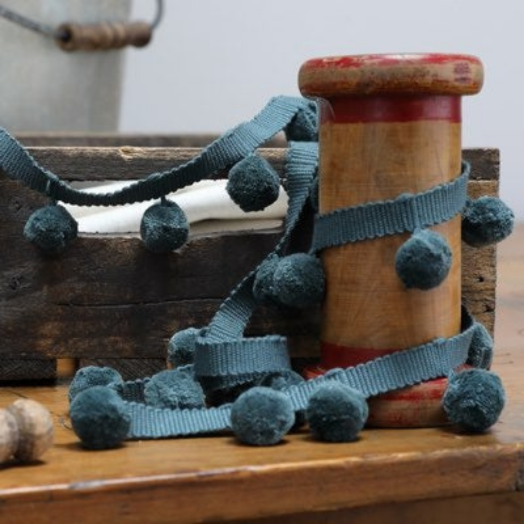 The pretty Pom Pom trimming from Olive & Daisy is perfect for trimming cushions, curtains, blinds, home accessories or craft projects. This trimming comes on matching braid and is available in 14 colourways to complement their gorgeous range of linen fabrics.