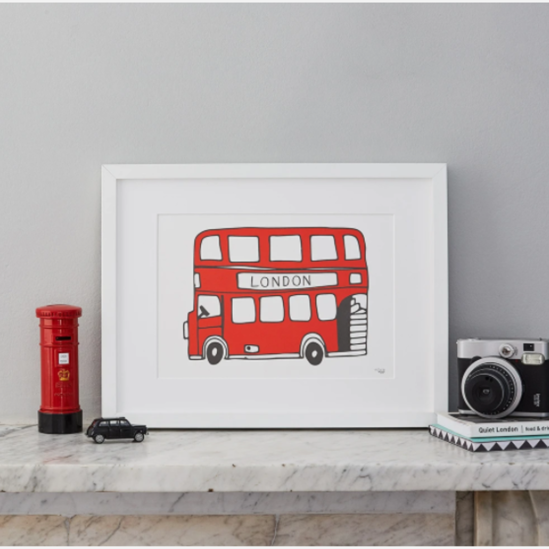 This hand-illustrated print celebrates a British cultural icon, the London Bus. A loving tribute to the iconic Route-master bus this whimsical print serves as a reminder of your adventures in the Big Smoke.