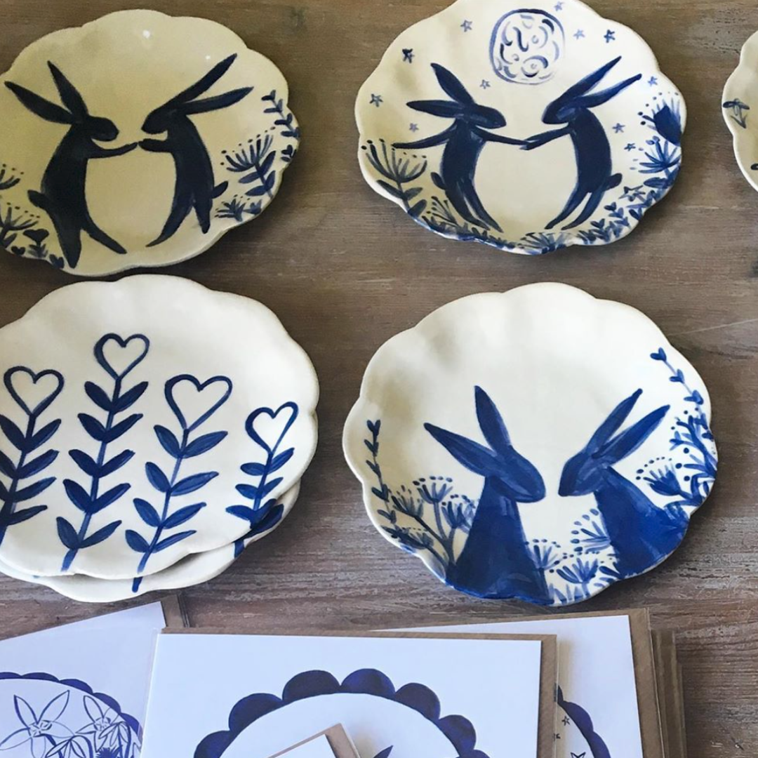 This collection of gorgeous ceramics is inspired by the folklore of English plants and animals celebrated for their symbolism and mythology. Each plate is designed and made in Hayley's Dorset studio from locally sourced, semi-porcelain clay then carefully handpainted with eco-freindly glazes and fired twice in an eco-kiln, making every piece unique and collectable.