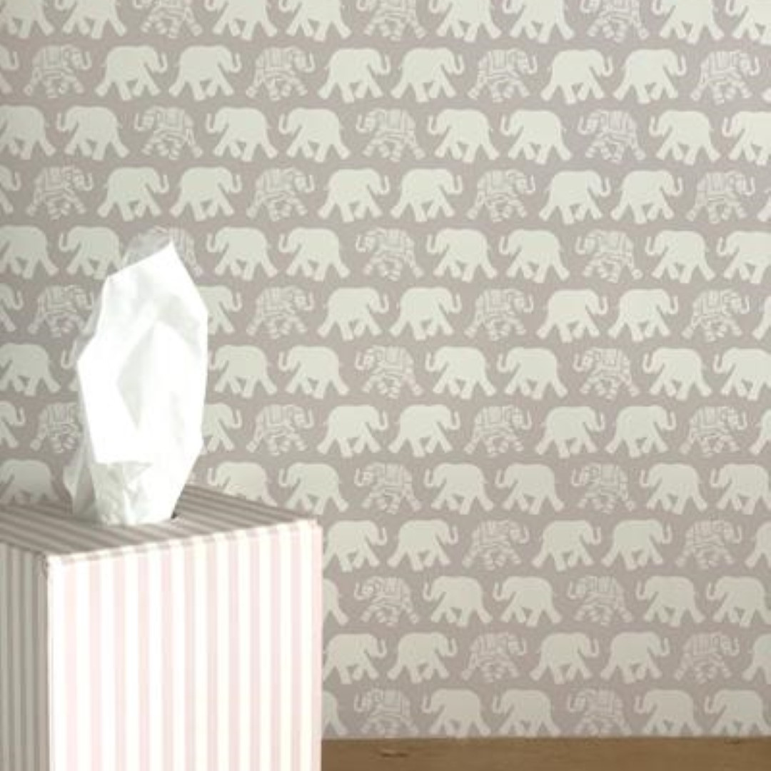 The gorgeous Mini Nellie wallpaper from Olive & Daisy features a fun, dressed elephant design and works perfectly in a nursery or bedroom. This pretty design comes in two scales, Mini Nellie and the larger scale, Nellie. This paper is available in 2 gorgeous colourways.