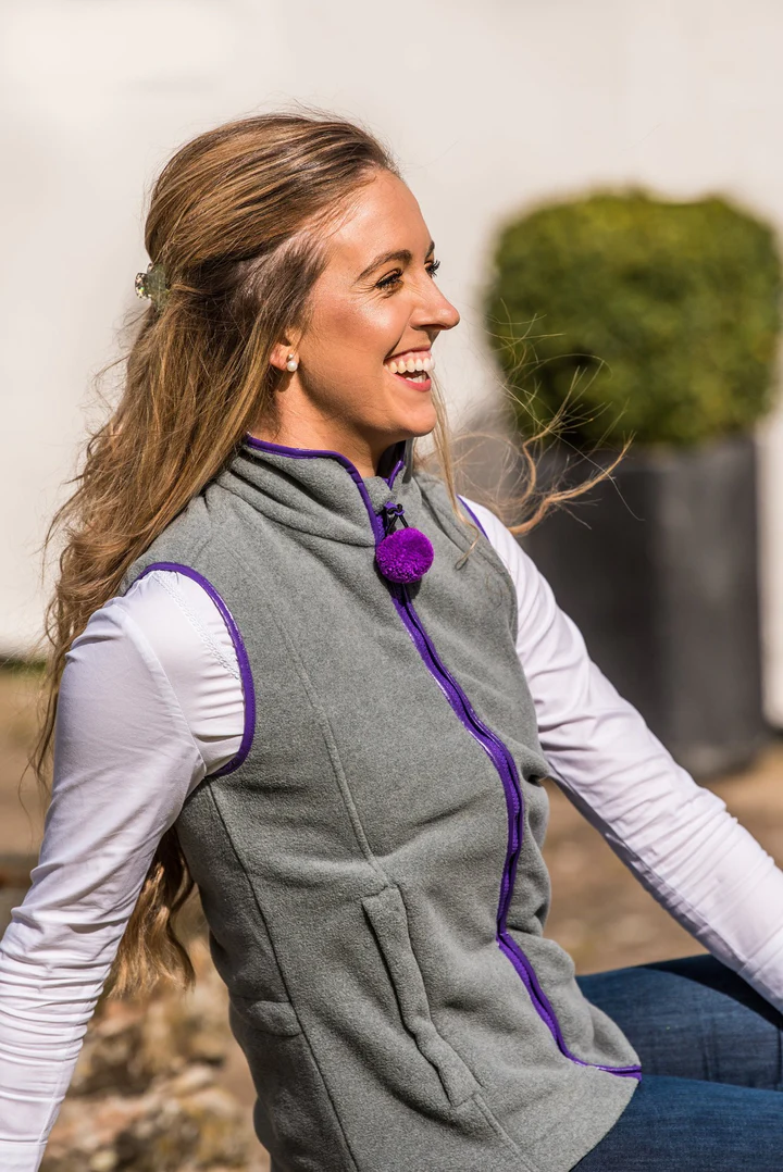 Nattily Dressed Adult Gilet | Grey with Purple Trim & Wool Pom