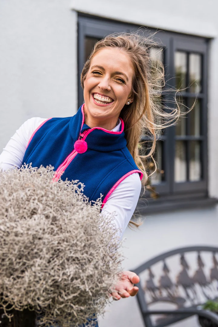 Nattily Dressed Adult Gilet | Navy with Pink Trim & Wool Pom