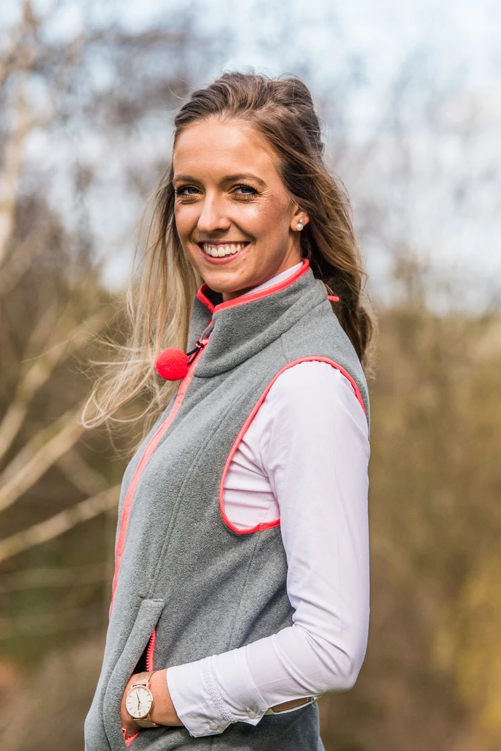 Nattily Dressed Adult Gilet | Grey with Coral Trim & Wool Pom