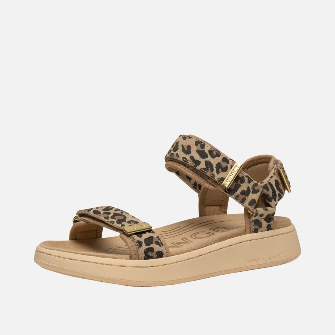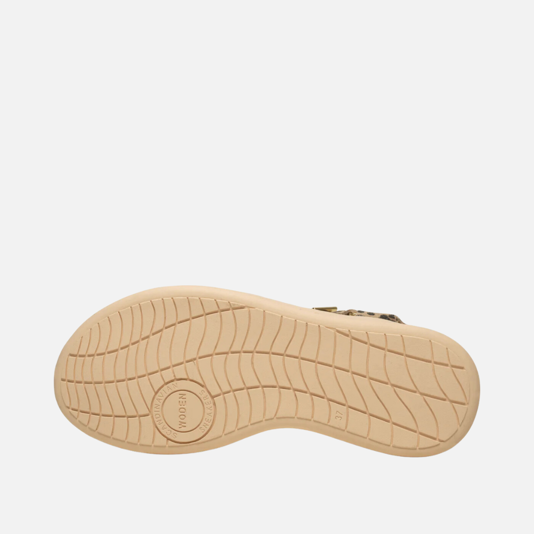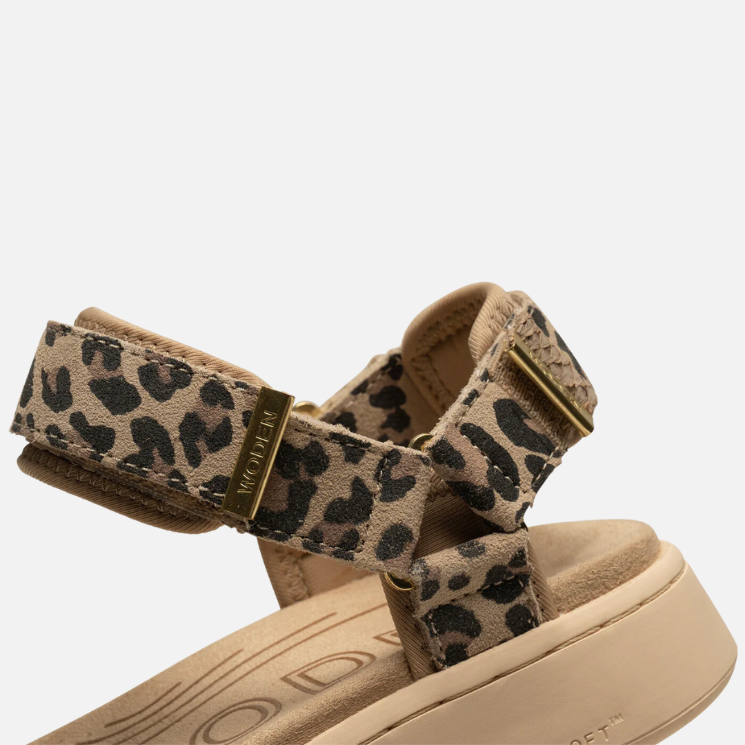 Step into comfort and contemporary style with the Line Sandals in Leopard from Woden. Crafted with soft textile and rubber materials, these sandals feature unique fish leather accents that add a sustainable and distinctive touch. The sleek metallic finish makes them a perfect match for your Spring/Summer wardrobe.