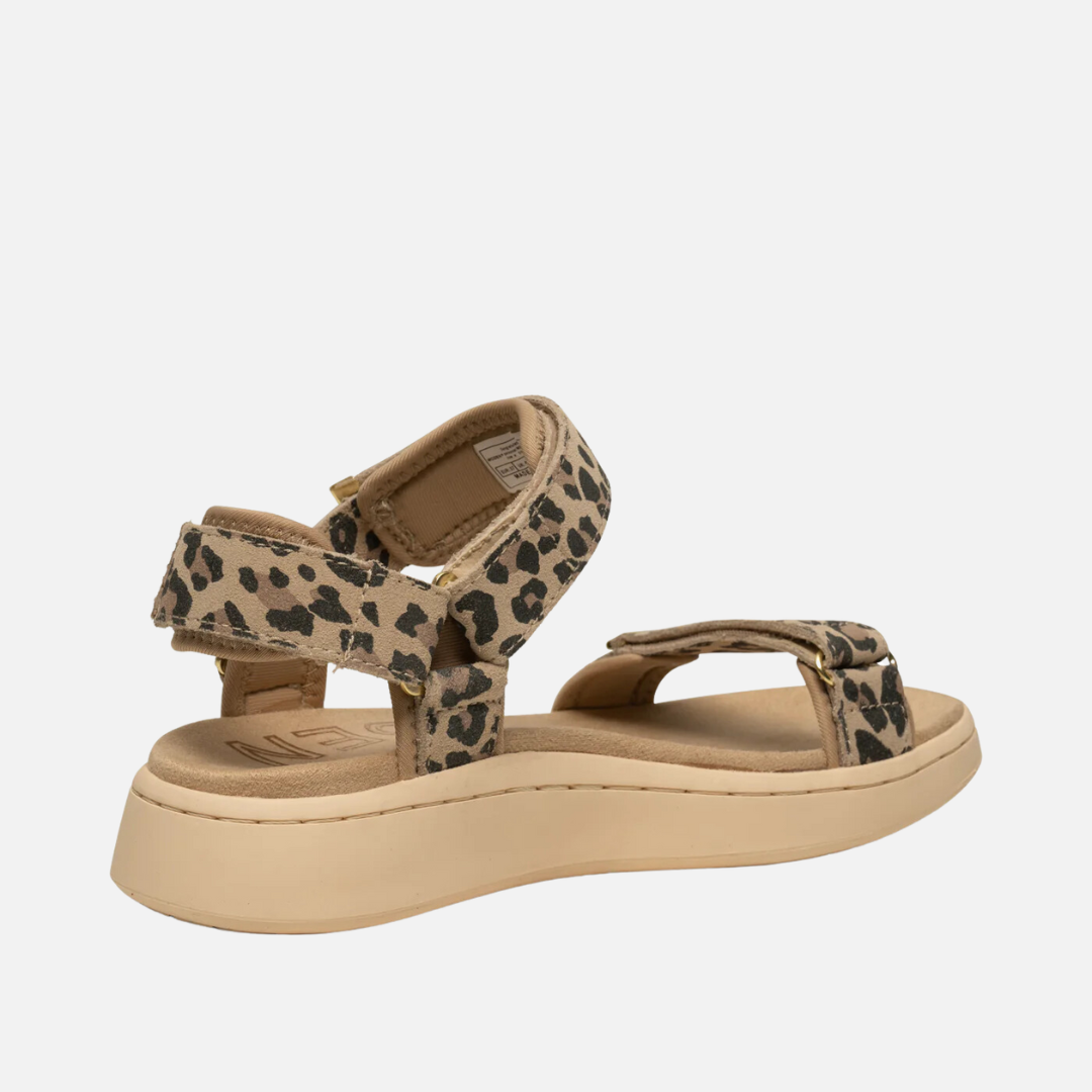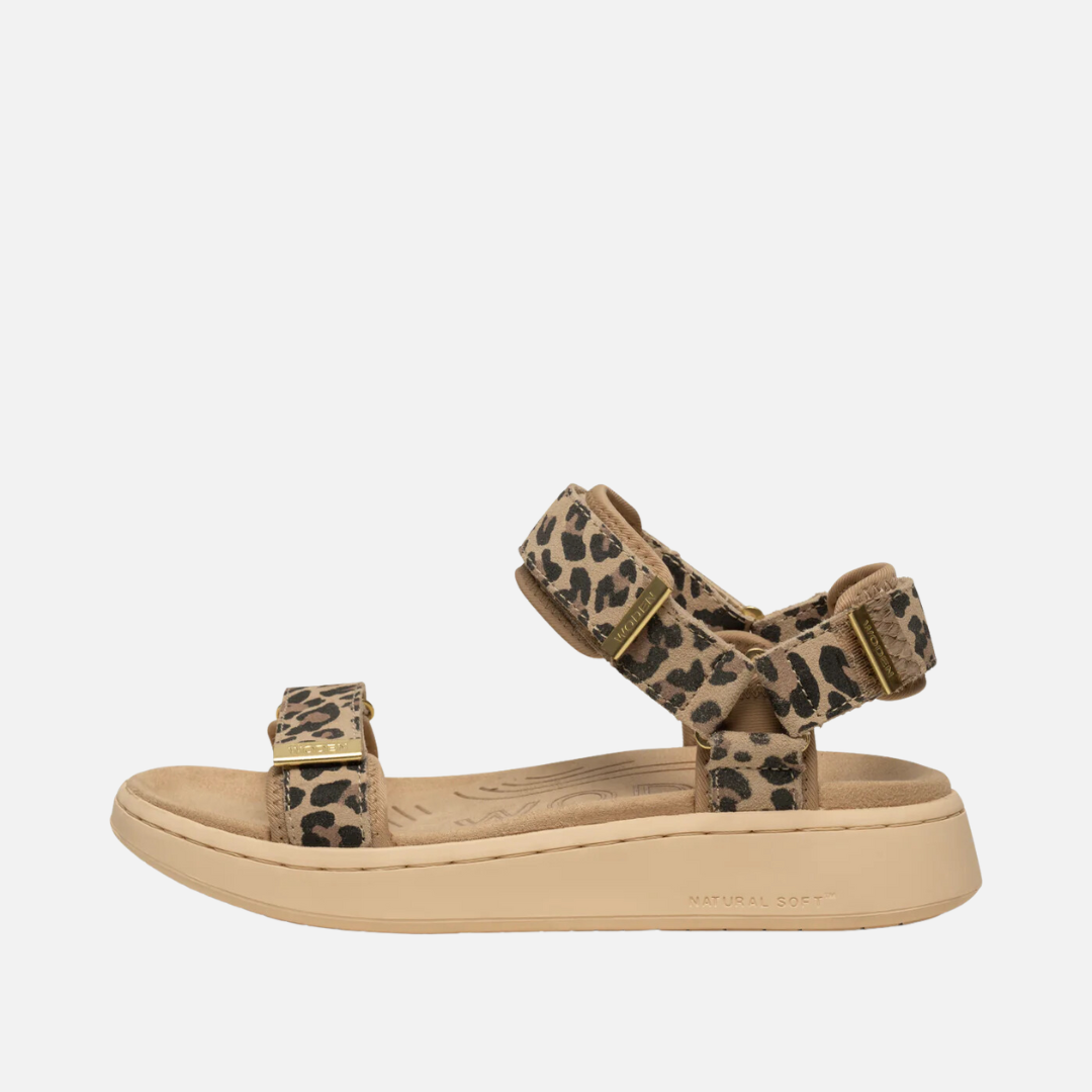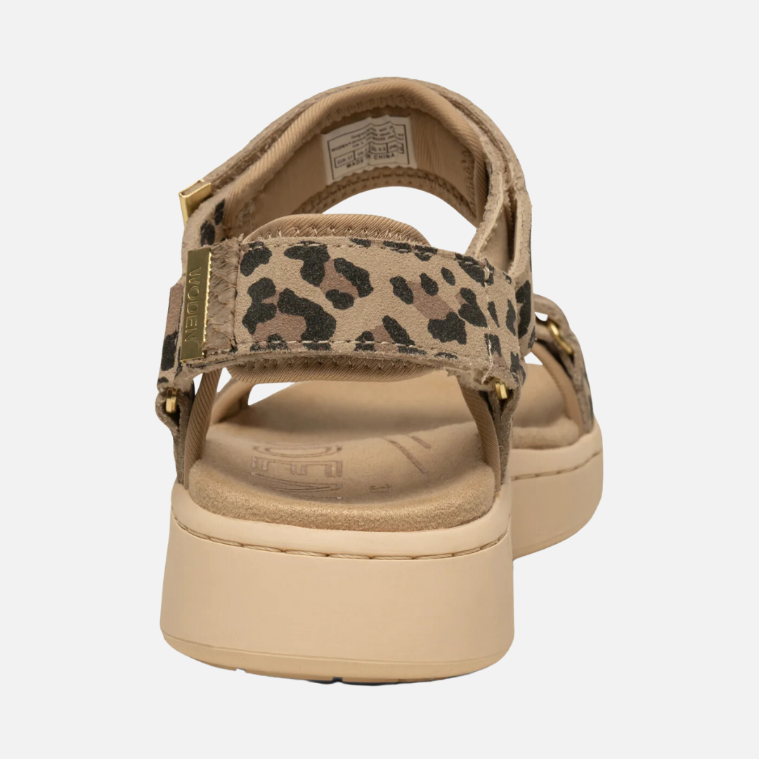 Step into comfort and contemporary style with the Line Sandals in Leopard from Woden. Crafted with soft textile and rubber materials, these sandals feature unique fish leather accents that add a sustainable and distinctive touch. The sleek metallic finish makes them a perfect match for your Spring/Summer wardrobe.