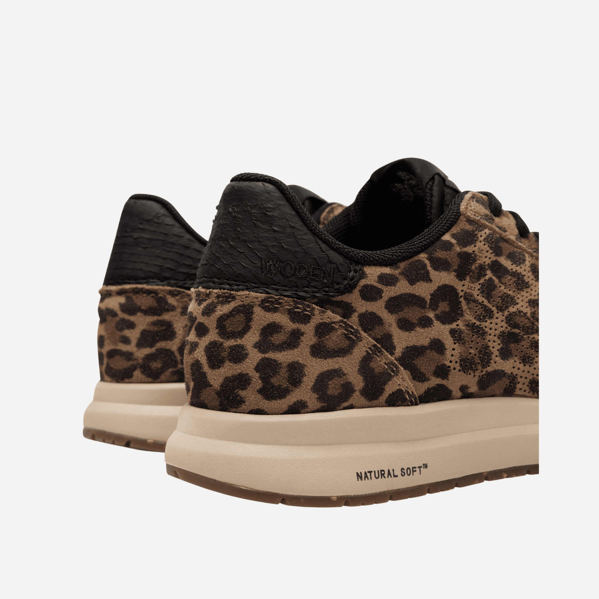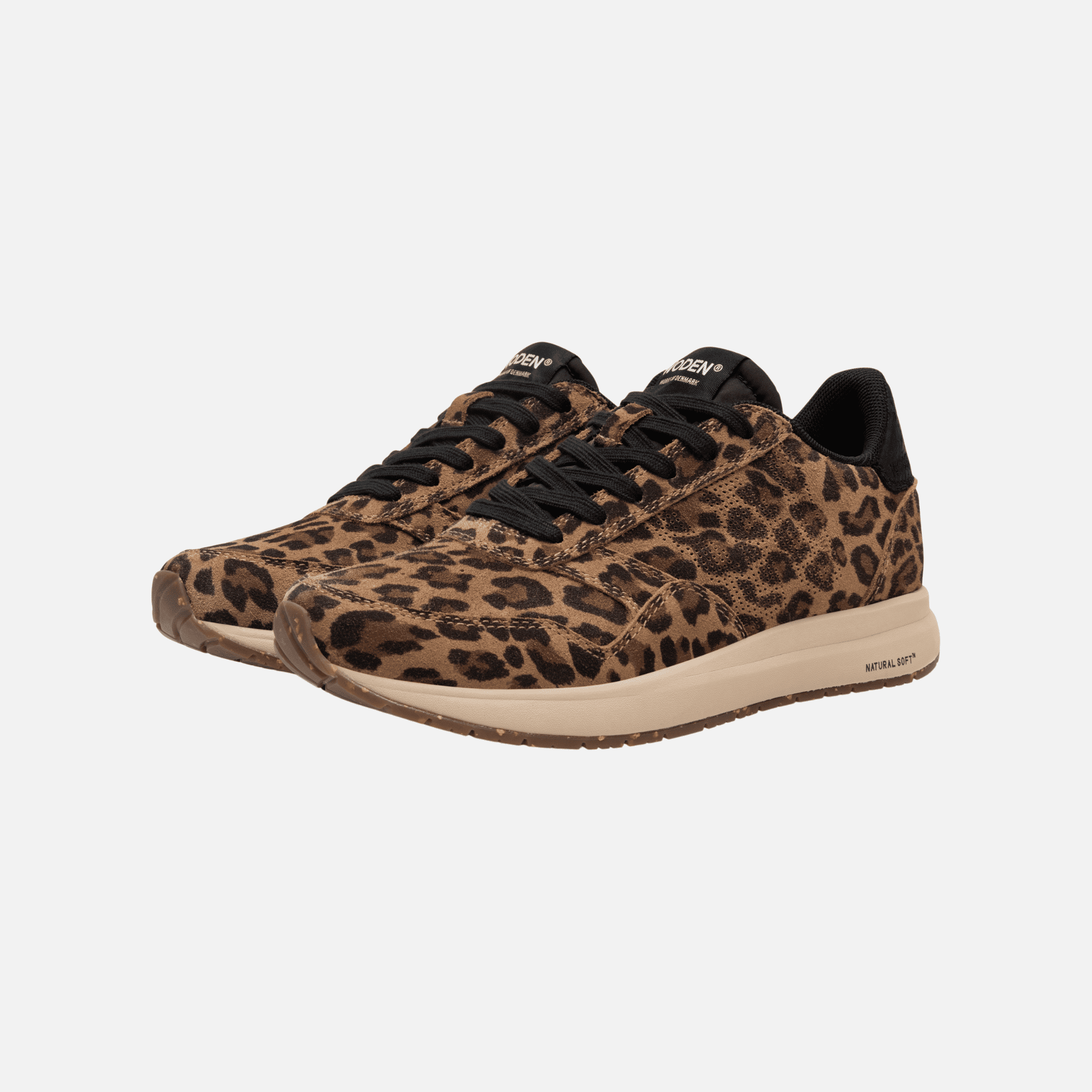 The expressive leopard upper is paired with soft detailing and a classic silhouette, giving a fresh yet versatile edge. For comfort, they feature WODEN Natural Soft Technology™ and a soft PU-molded insole with cork cover, ensuring lightweight cushioning and shock absorption. The Air Flow System™ adds breathability, while the EVA molded midsole and rubber outsole with 10% recycled rubber deliver durability and everyday support.