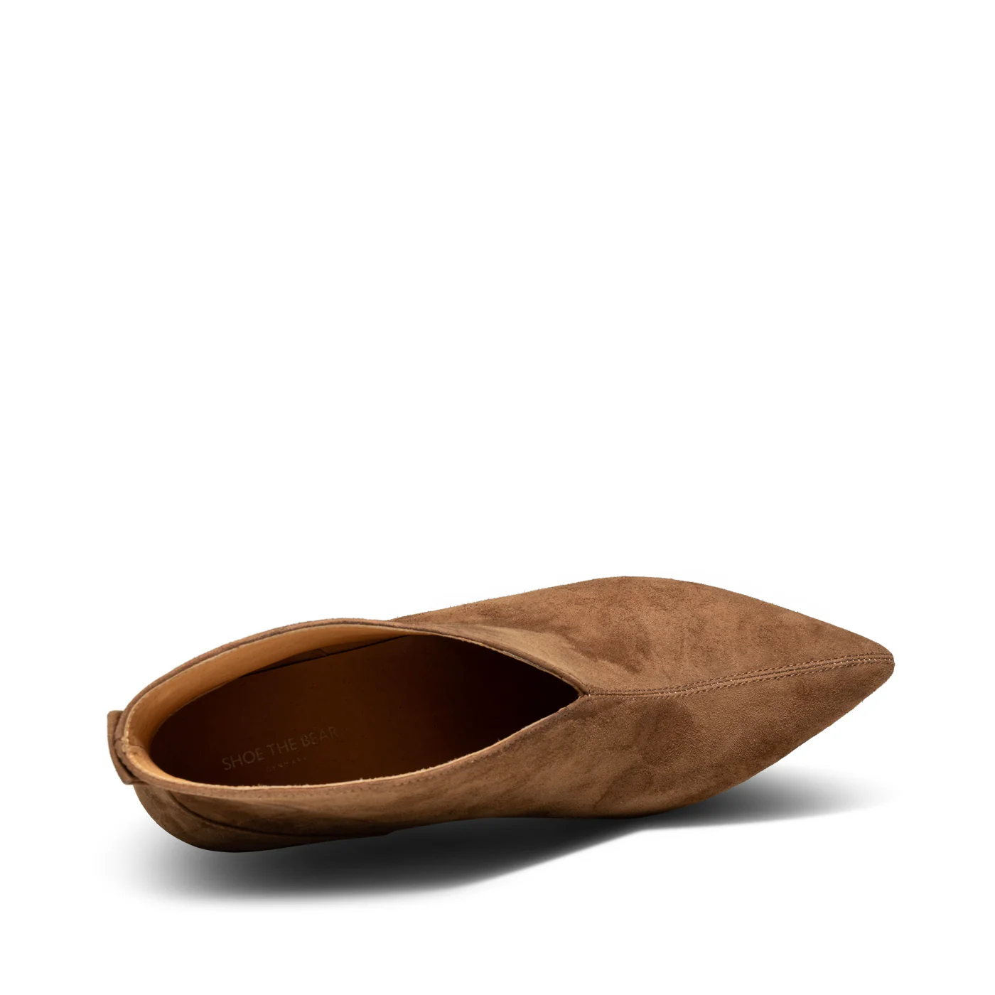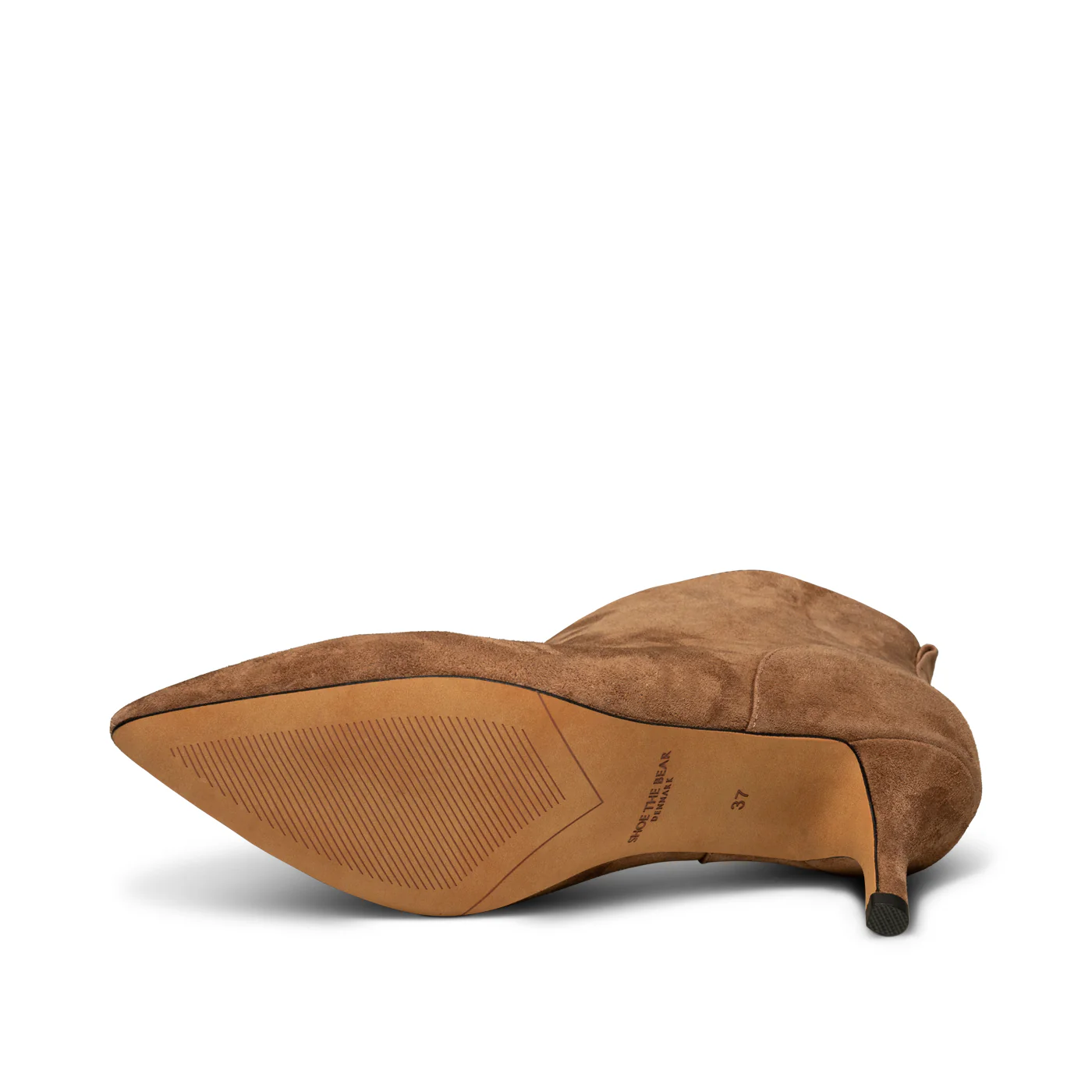 Indulge in timeless elegance with the Valentine Heeled Suede Boot in Tan by Danish brand, Shoe the Bear. Made with premium suede, this ankle bootie boasts a sleek pointy toe and flattering silhouette. Its comfortable heel makes it versatile for any event, from a day at the office to a night out on the town. Add a touch of sophistication to your wardrobe with this must-have boot.