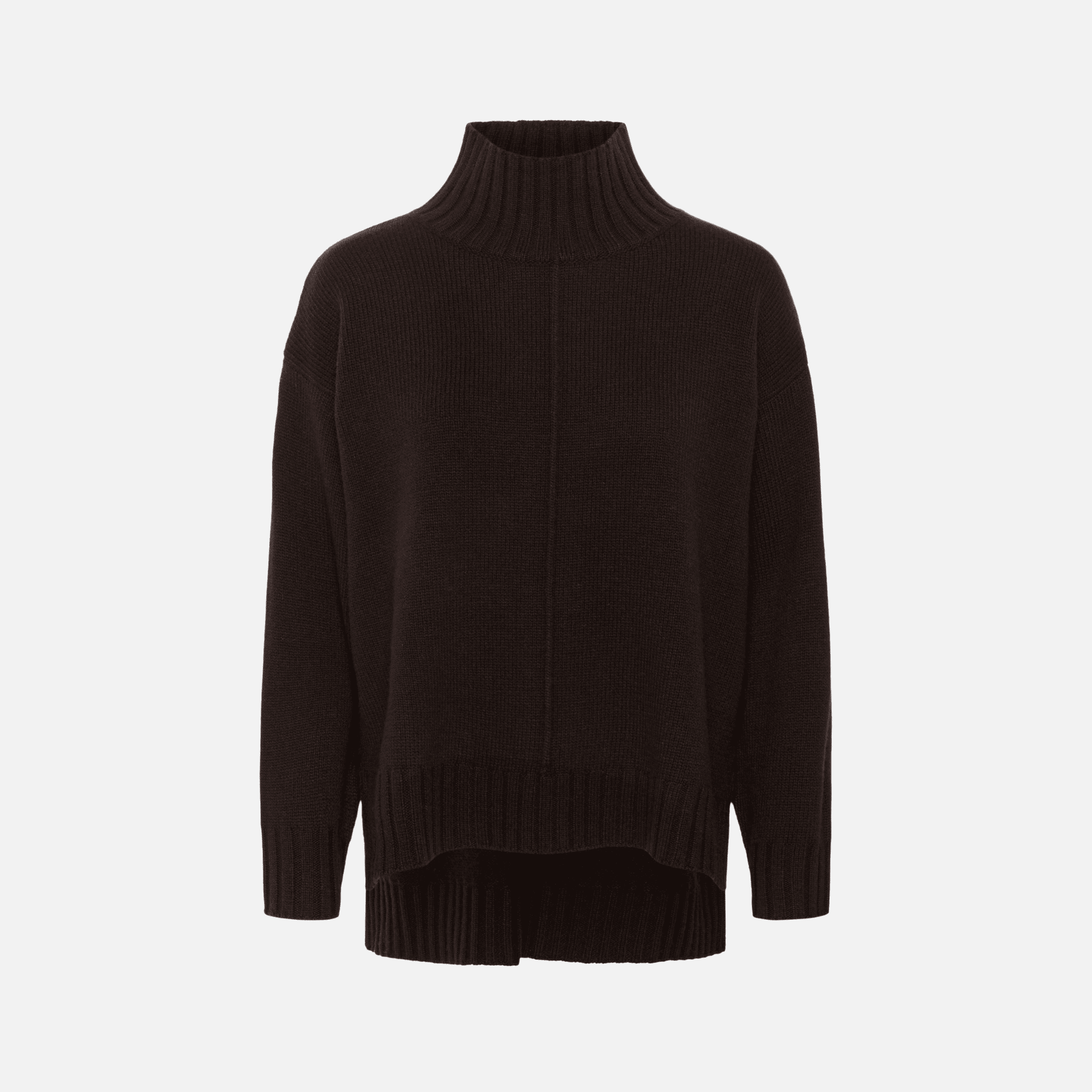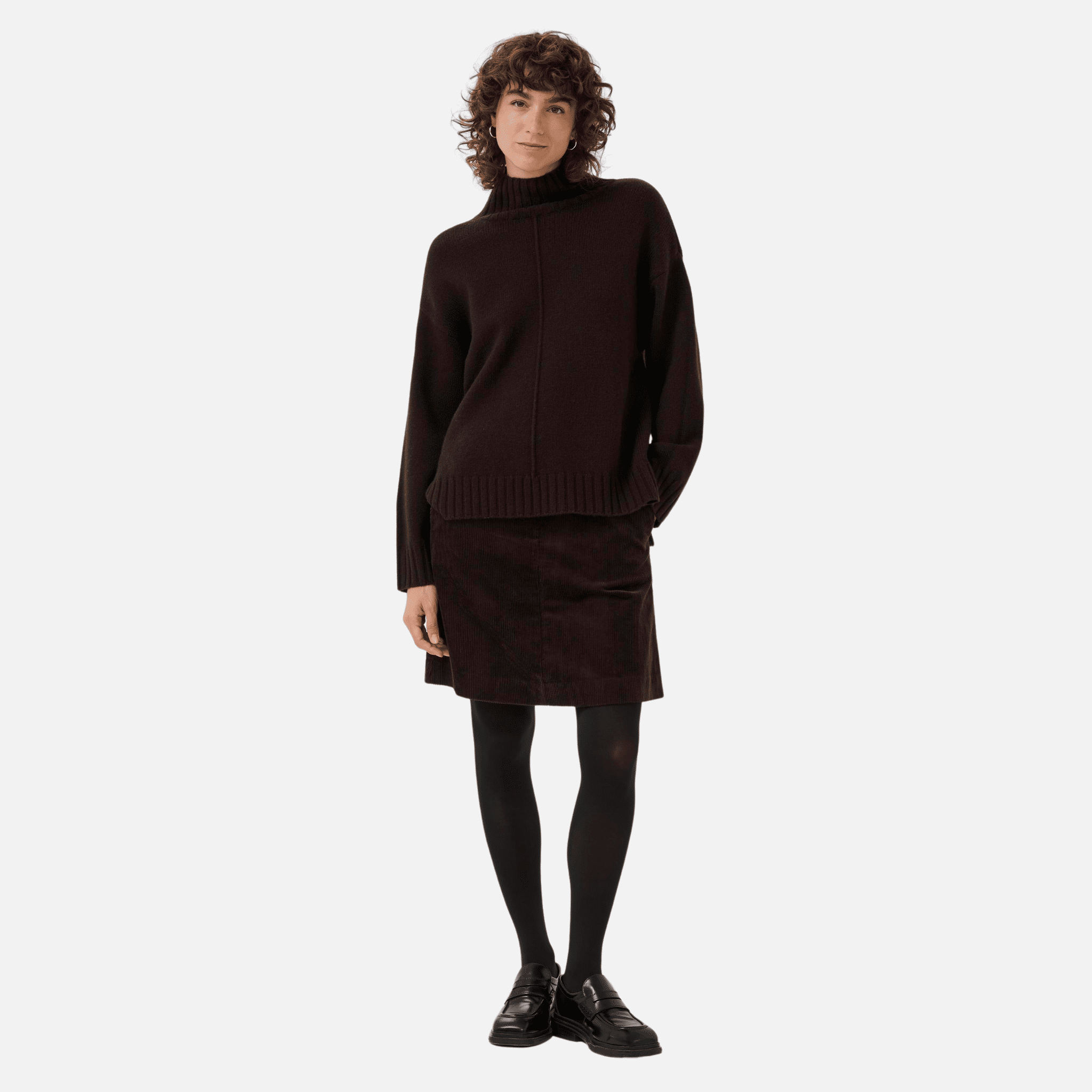 The Lilye Pullover in Ganache by Part Two is a cosy roll-neck sweater crafted from a soft certified wool blend. Designed with a relaxed fit and dropped shoulders, it’s finished with ribbed trims and subtle side slits for laid-back ease. Perfect for pairing with jeans or leggings for a clean, everyday look.