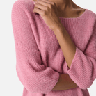 The Tuesday Jumper is a soft, versatile knit in a beautiful Polignac pink tone. Designed with a round neckline, relaxed silhouette, and three-quarter sleeves, it blends comfort with understated elegance. The textured knit finish adds depth, making it a timeless addition to your wardrobe.