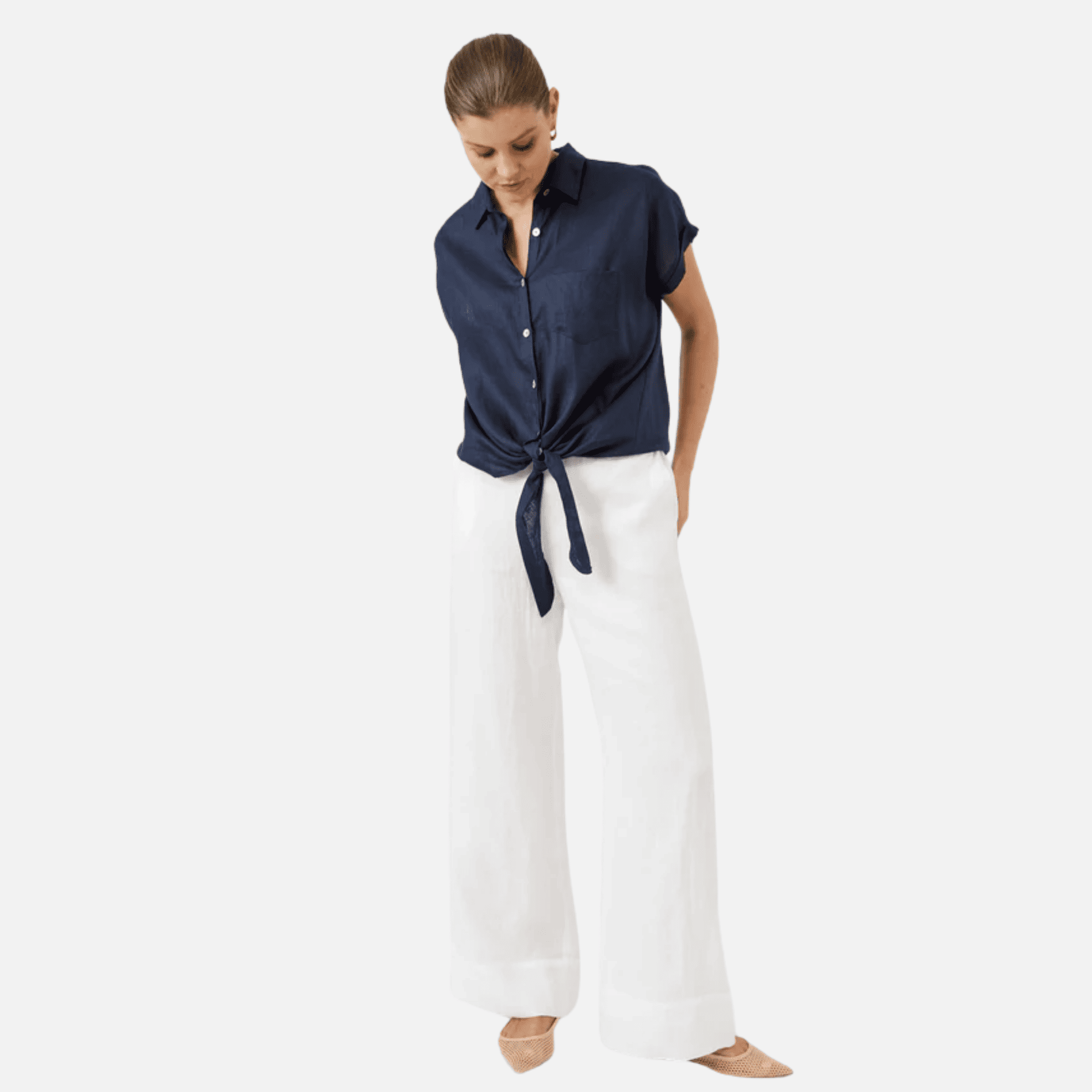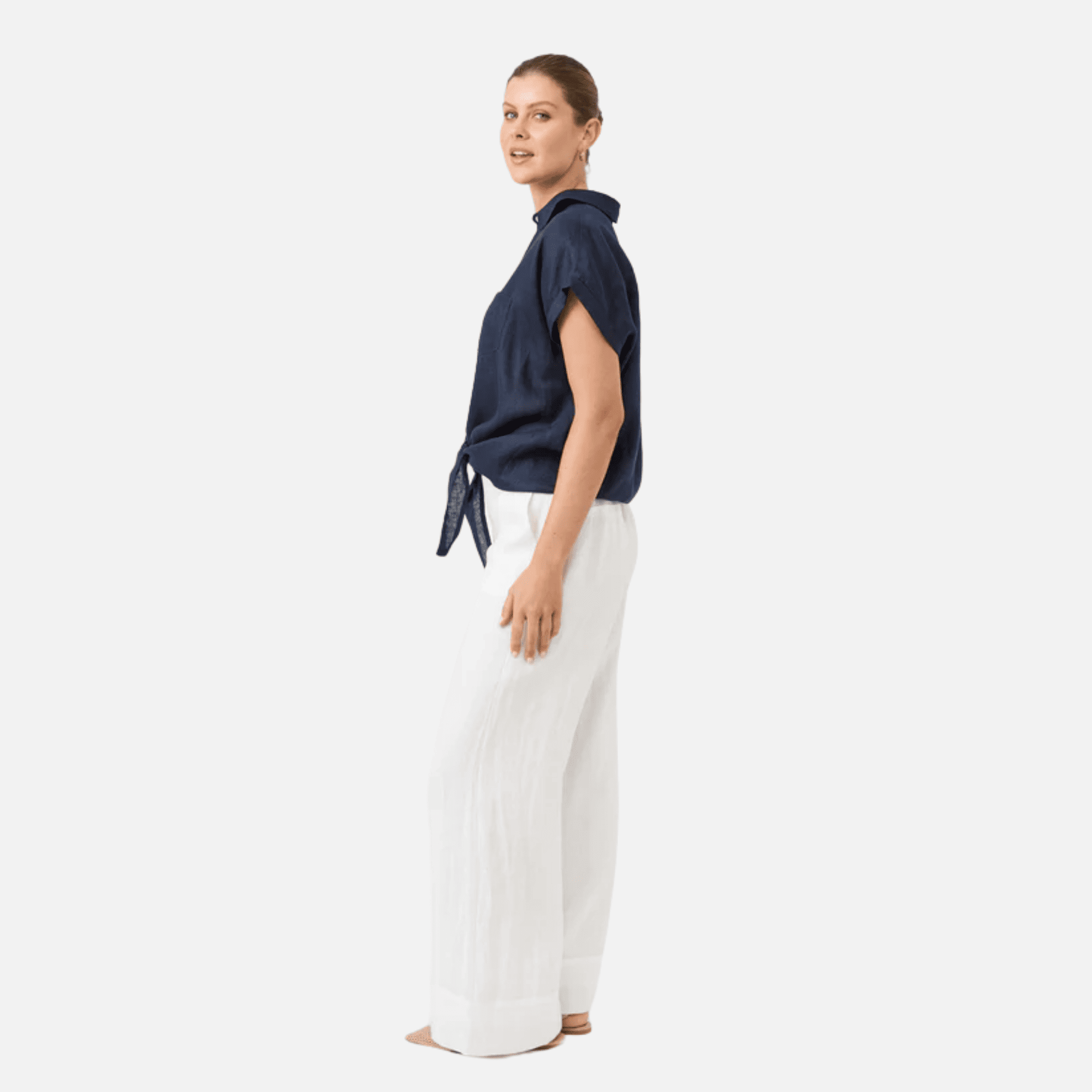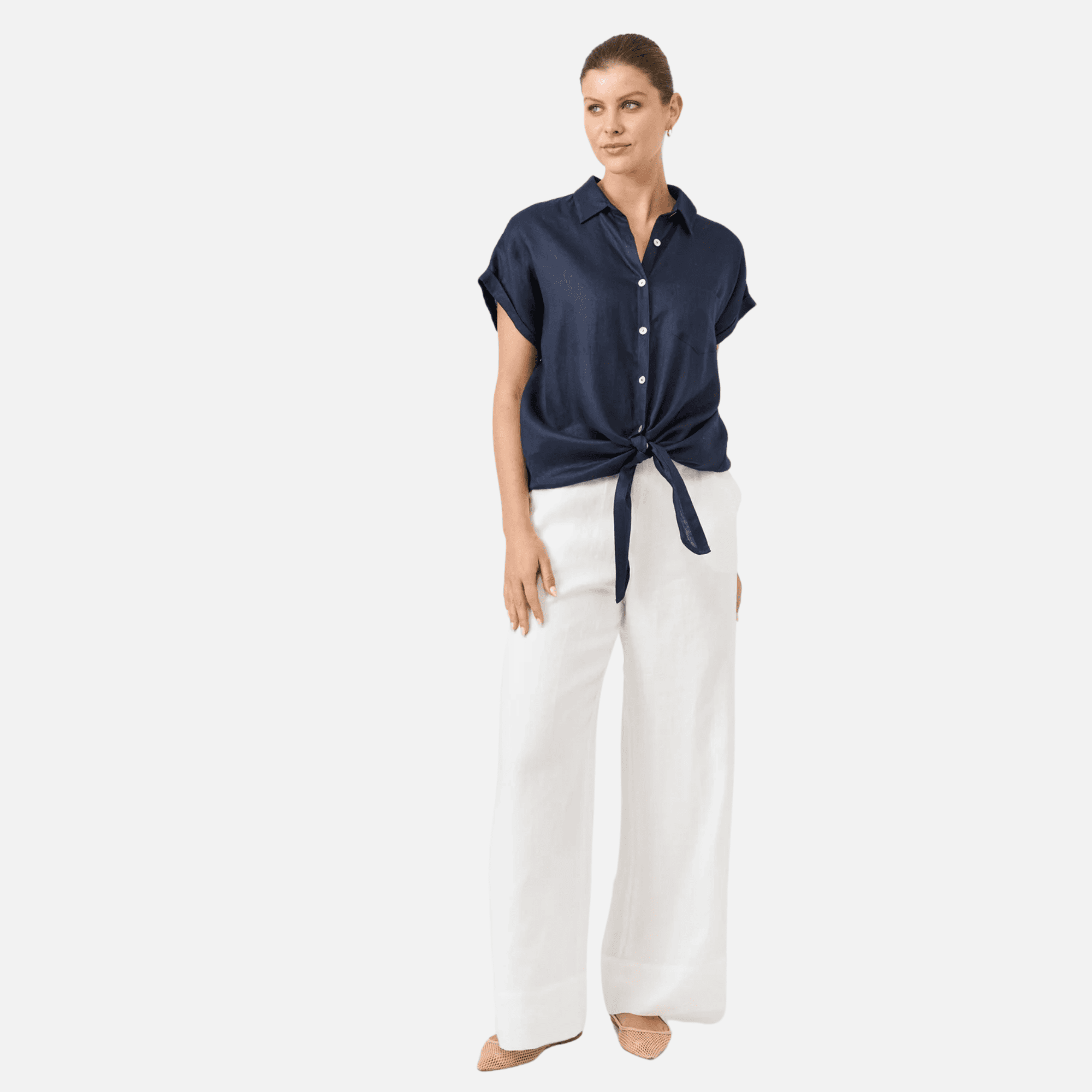 A wardrobe essential for relaxed days, the Studio Tie Front Shirt in Tusk (Stone) offers effortless style and comfort. This top looks great when paired with the Studio Pants.