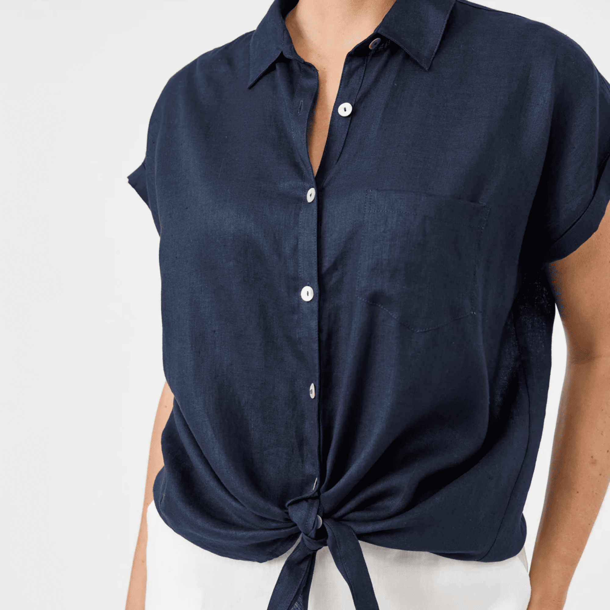 Achieve an effortlessly stylish look with the Studio Tie Front Shirt in Tusk (Stone) by Eb & Ive. Crafted from 100% linen, this versatile shirt features a relaxed, one-size fit for ultimate comfort. The classic collar, button-down front, and cuffed short sleeves add a touch of sophistication, while the tie detail creates a flattering silhouette. With a front pocket adding subtle practicality, this shirt pairs beautifully with linen shorts or jeans for a laid-back yet polished vibe.