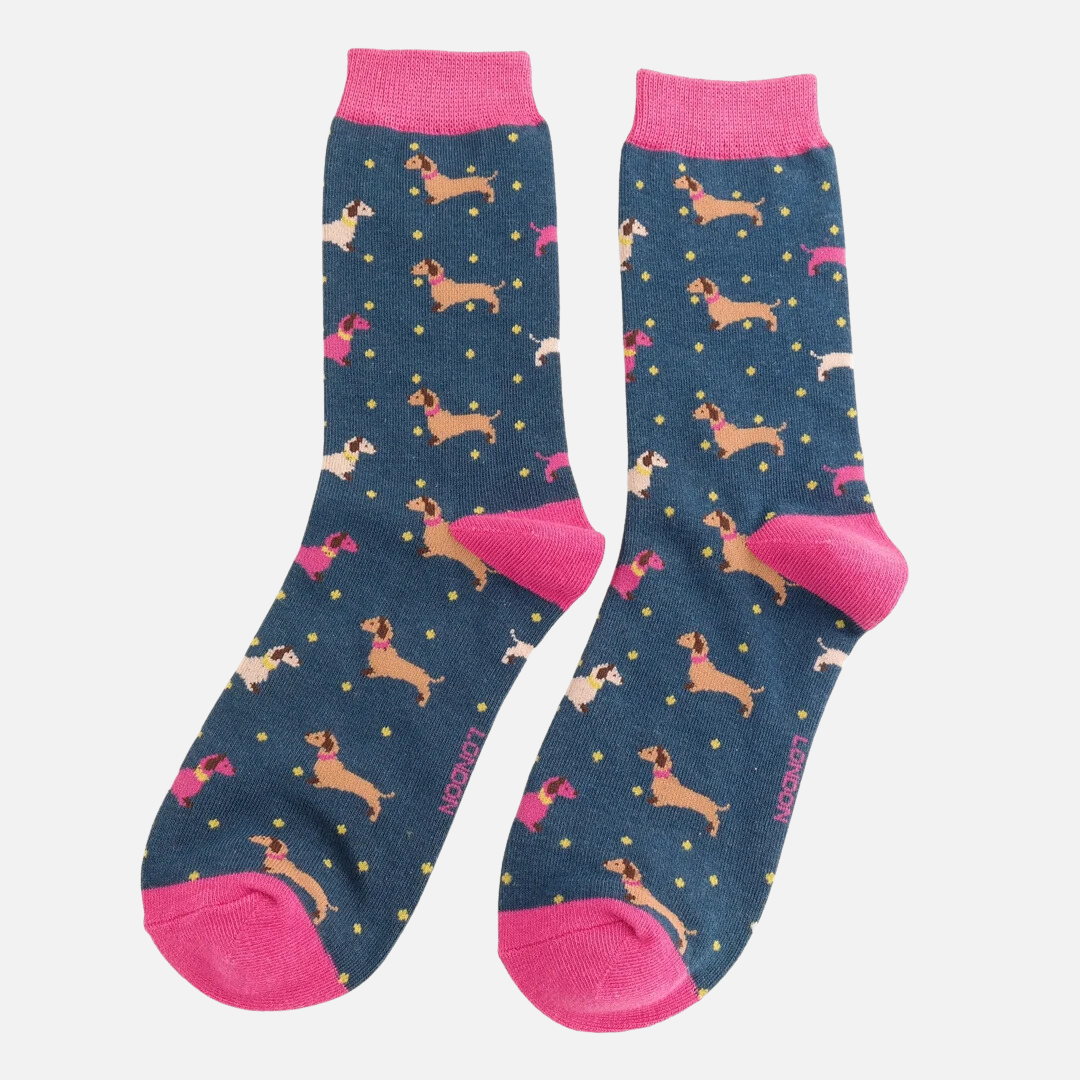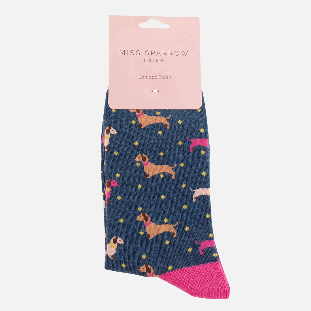 Miss Sparrow Socks | Sausage Dog & Spots Navy
