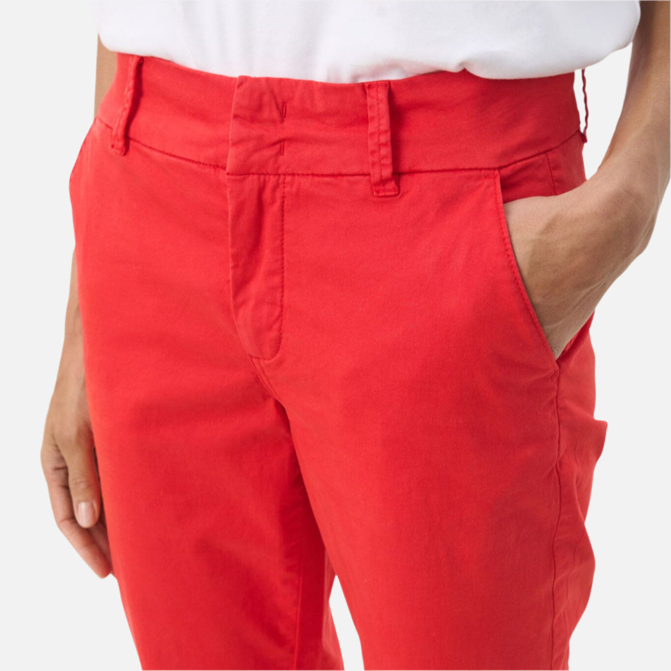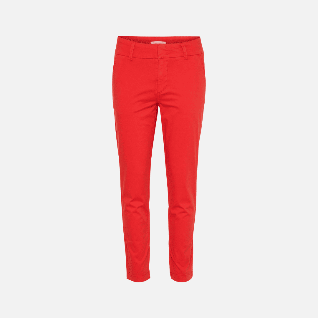A timeless wardrobe essential, the Soffy's 7/8 Cropped Chinos in Mars Red by Part Two offer the perfect balance of style and comfort. Crafted from a soft cotton blend with a touch of stretch, these slim-fit chinos are designed for effortless everyday wear. Featuring side pockets, belt loops, and a flattering cropped length, and transition seamlessly from casual to smart styling.