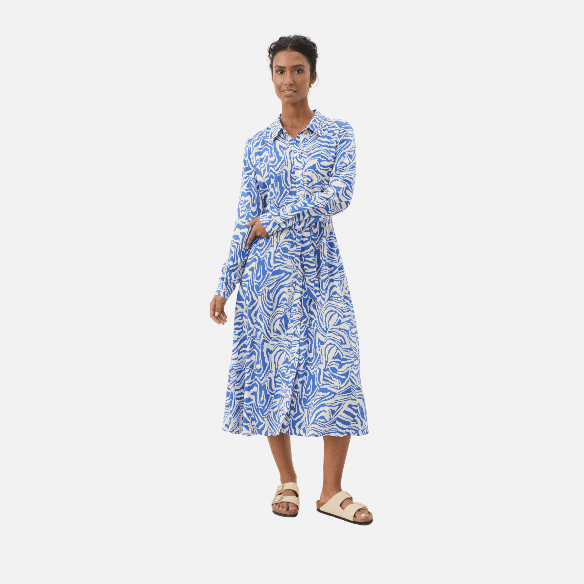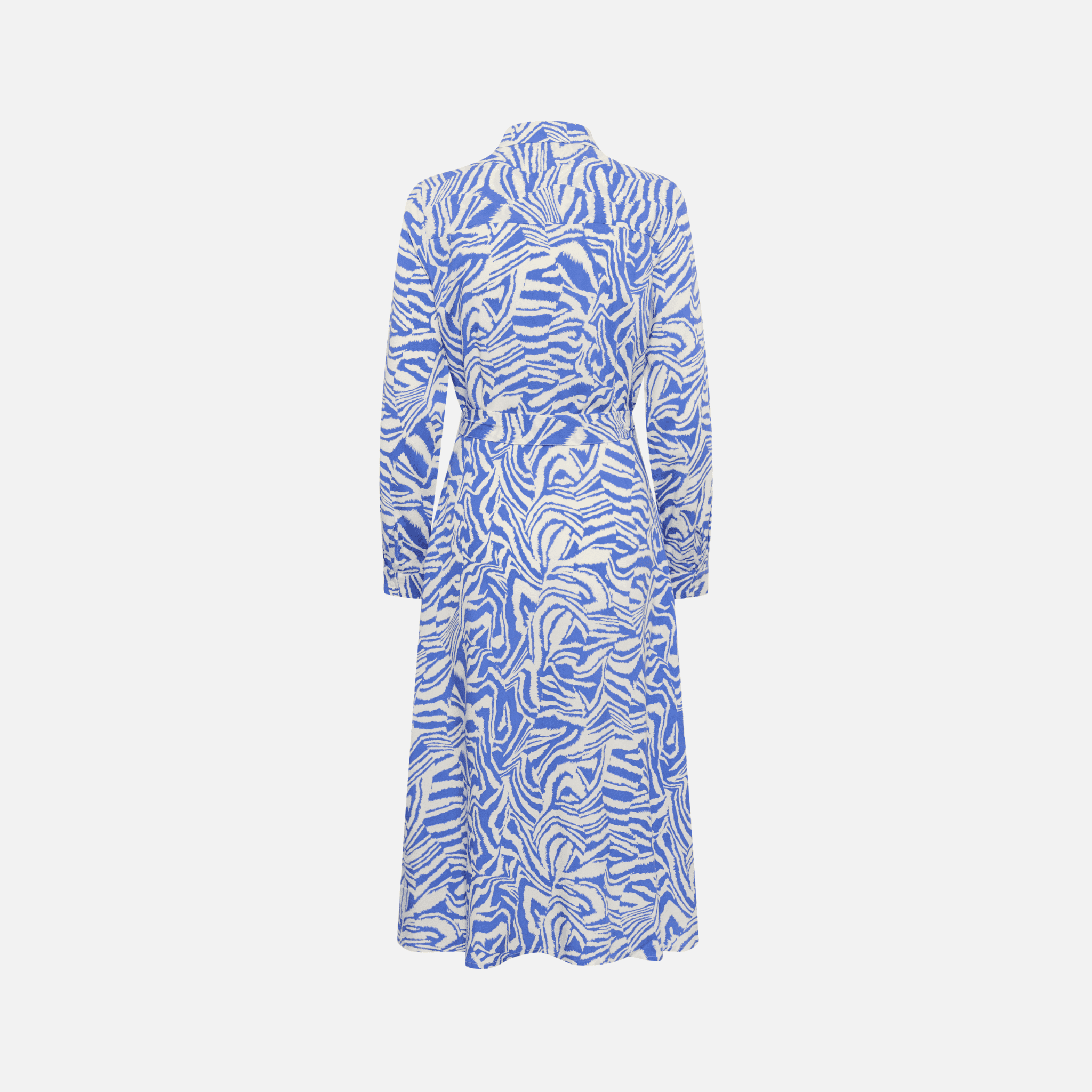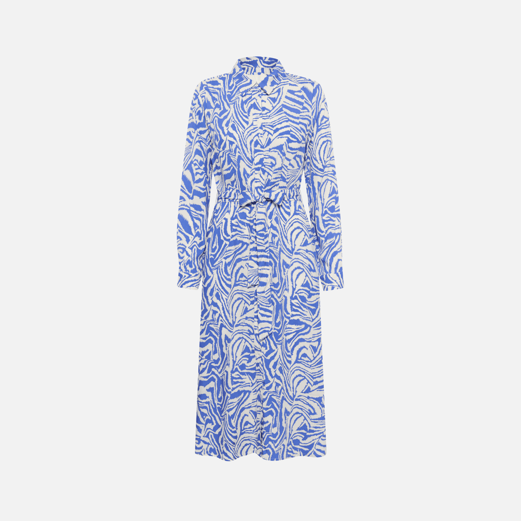 The Shelby Dress by Part Two makes a bold yet versatile statement with its Amparo blue-and-white animal print. Designed in a feminine fit, it features a button-down front, long sleeves, and a waist tie belt to create a flattering silhouette. Crafted from sustainable LENZING™ ECOVERO™ viscose, it combines striking style with everyday comfort.