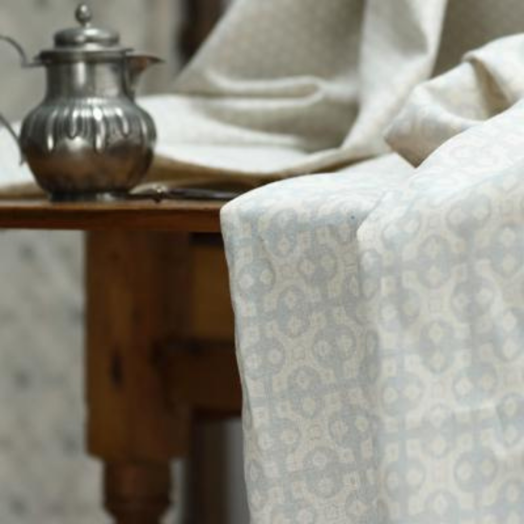 The stunning Adeline design from Olive & Daisy features a two-tone, small scale geometric pattern. It has a softly coloured classic palette with a motif reminiscent of ceramic tiles.This print is available in 5 gorgeous colourways.