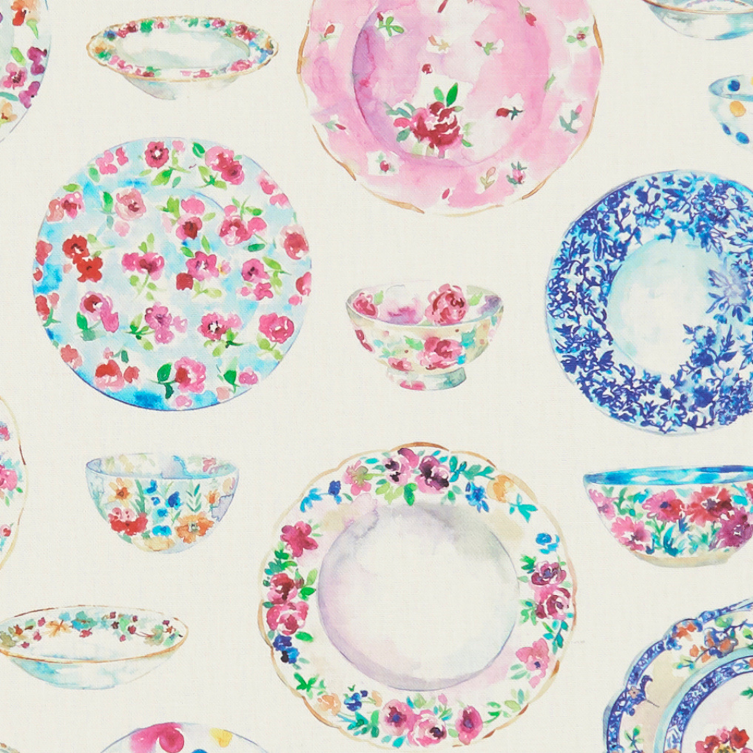 Crockery by Studio G is a design from the Village Life collection from Clarke and Clarke. With its quaint hand-painted watercolour details, Crockery features a selection of vintage tea cups, saucers, and crockery with a colourful floral design.