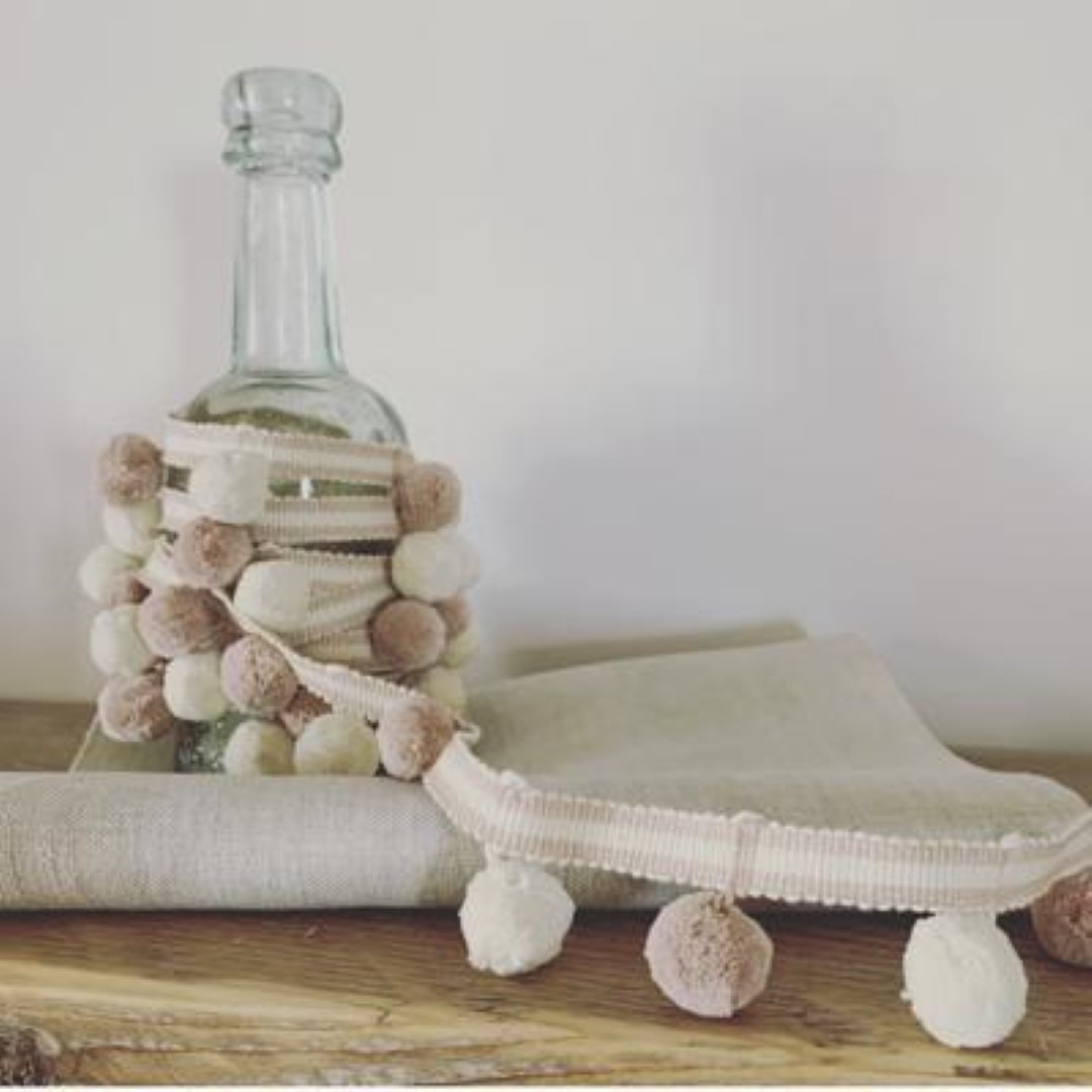 The pretty Dual Colour Pom Pom trimming from Olive & Daisy is perfect for trimming cushions, curtains, blinds, home accessories or craft projects. This trimming comes on matching braid and is available in 11 colourways to complement their gorgeous range of linen fabrics.