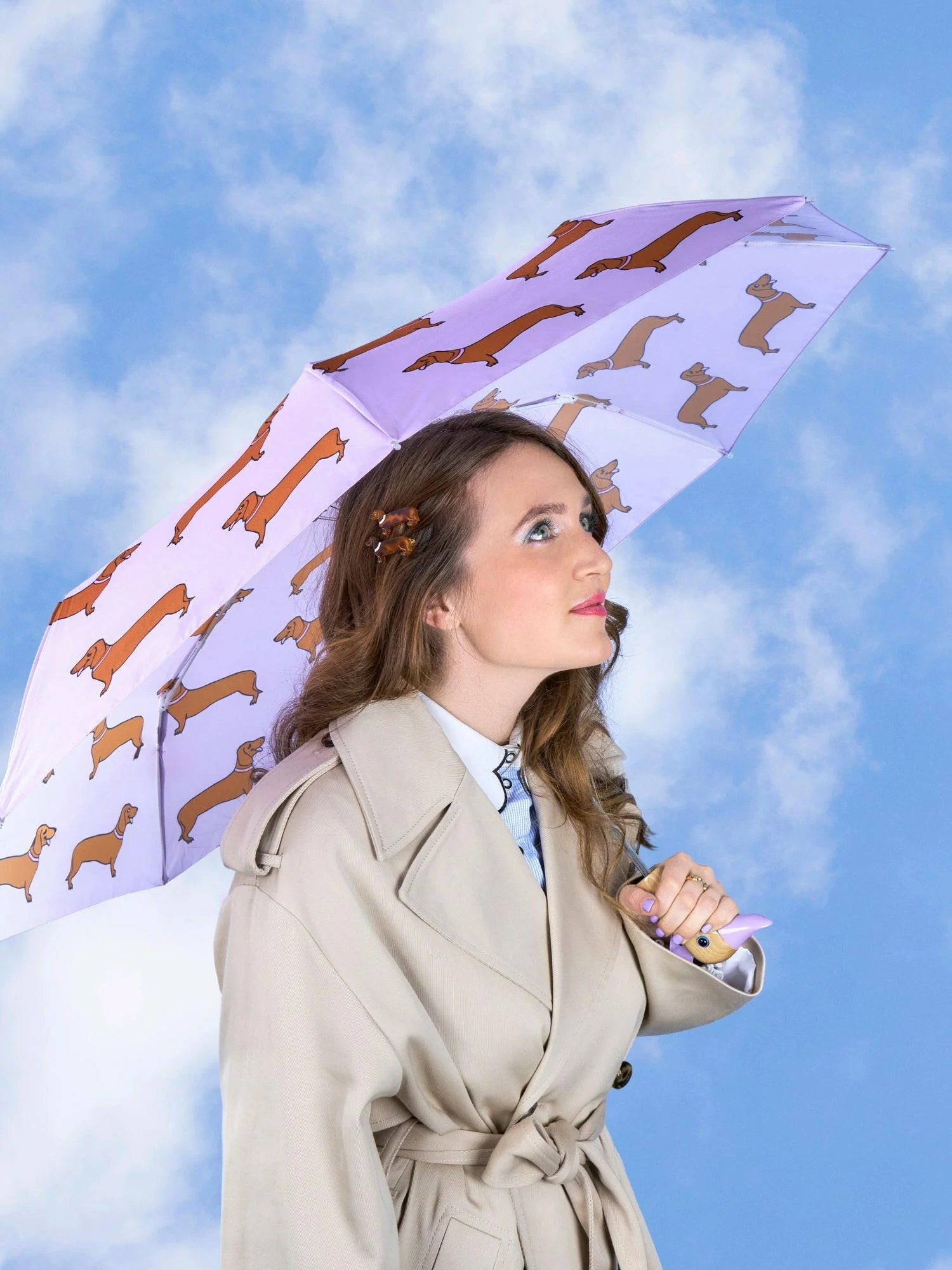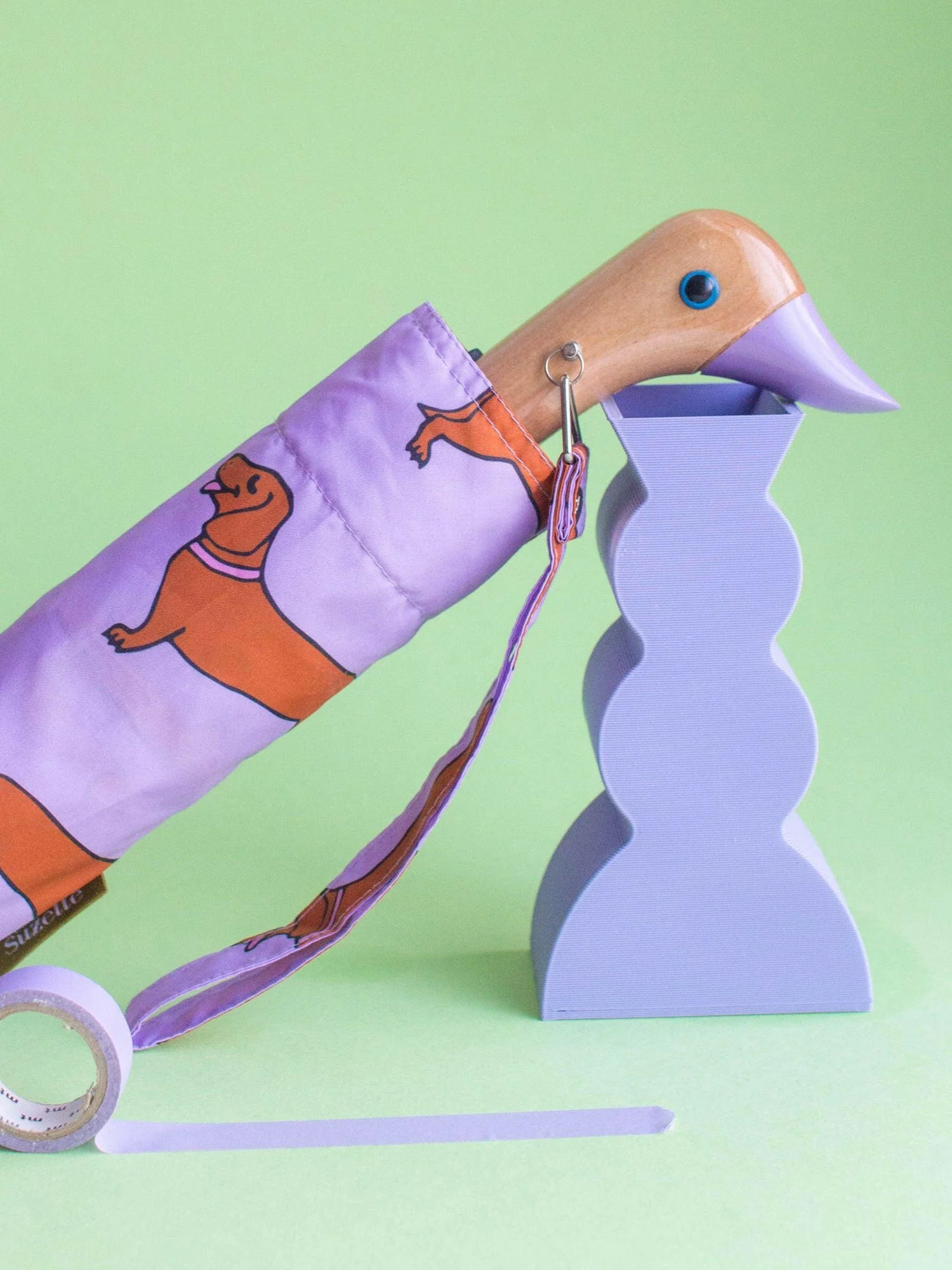 Eco Friendly Compact Duck Umbrella | Lilac Dachshund Dog