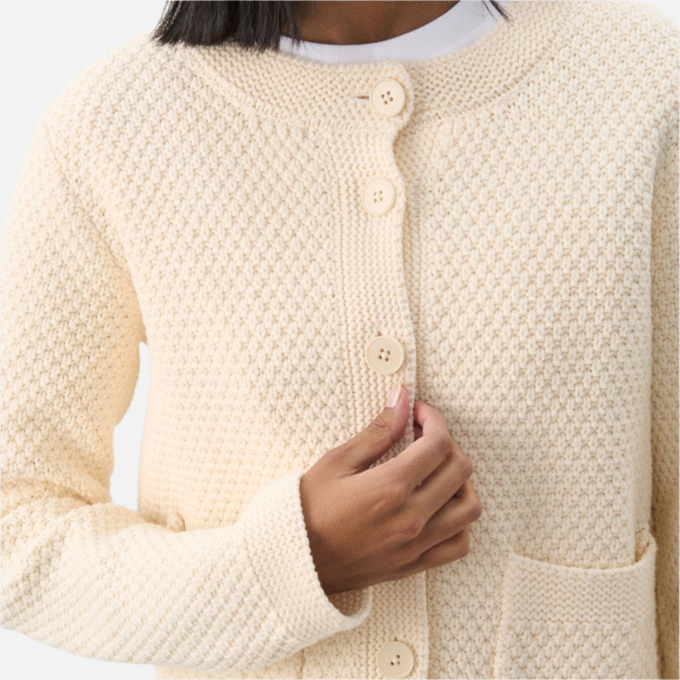 A timeless essential reimagined with texture and softness – the Elmie Cardigan by Part Two is the perfect layer to elevate your everyday wardrobe. Crafted in a beautifully soft bouclé knit, it offers warmth without compromising on elegance.
