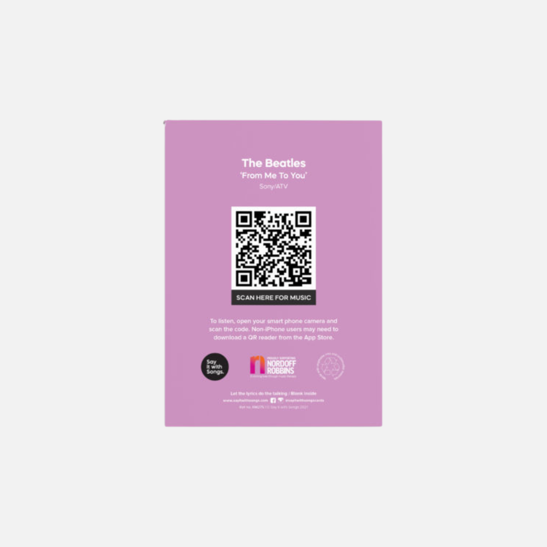 This unique music card from Say it with Songs plays the classic song ‘From me to you’ by The Beatles.