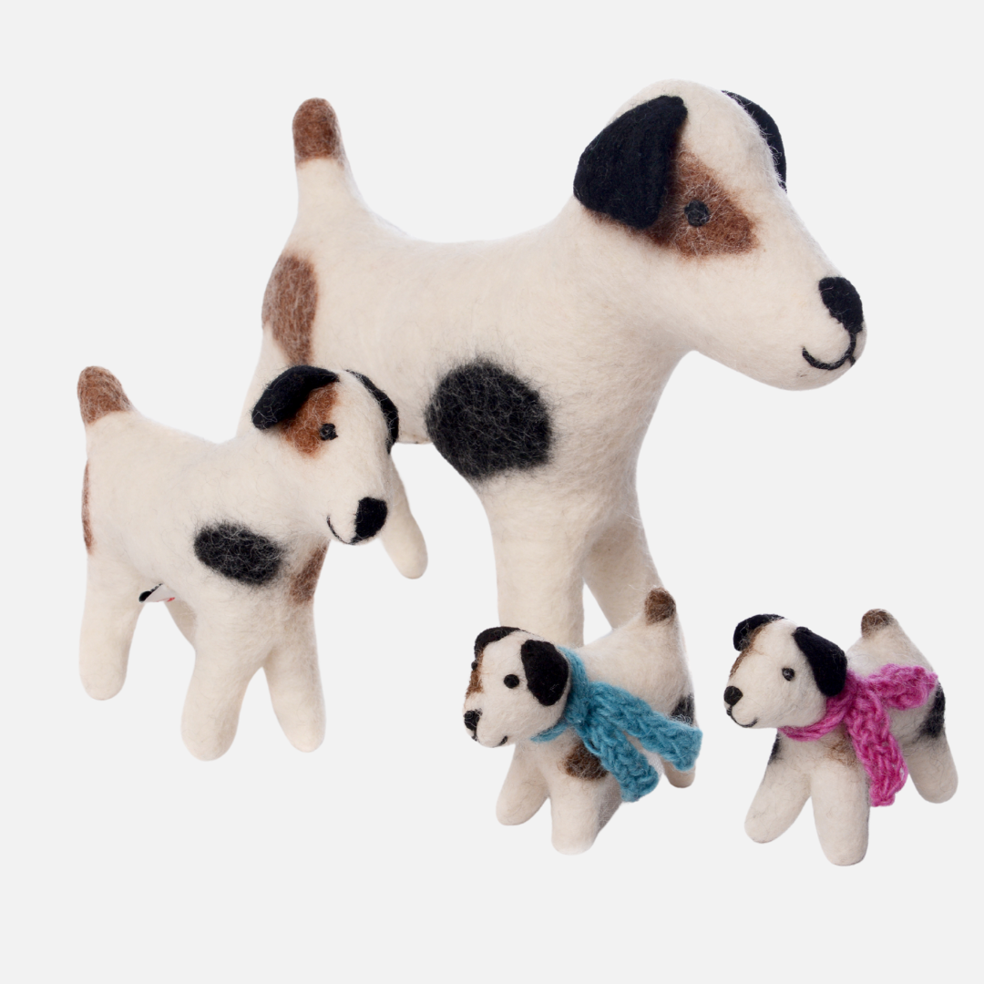 Meet Jill – your new woolly best friend! This loyal little Jack Russell is handmade from 100% wool felt and crafted with love in Nepal for Amica. Each pup is carefully moulded, stuffed, and finished with individually applied markings, making every Jacques as unique as the real-life dogs they’re inspired by.