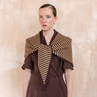 Large Merino Wool Triangle Scarf | Camel & Brown Stripe