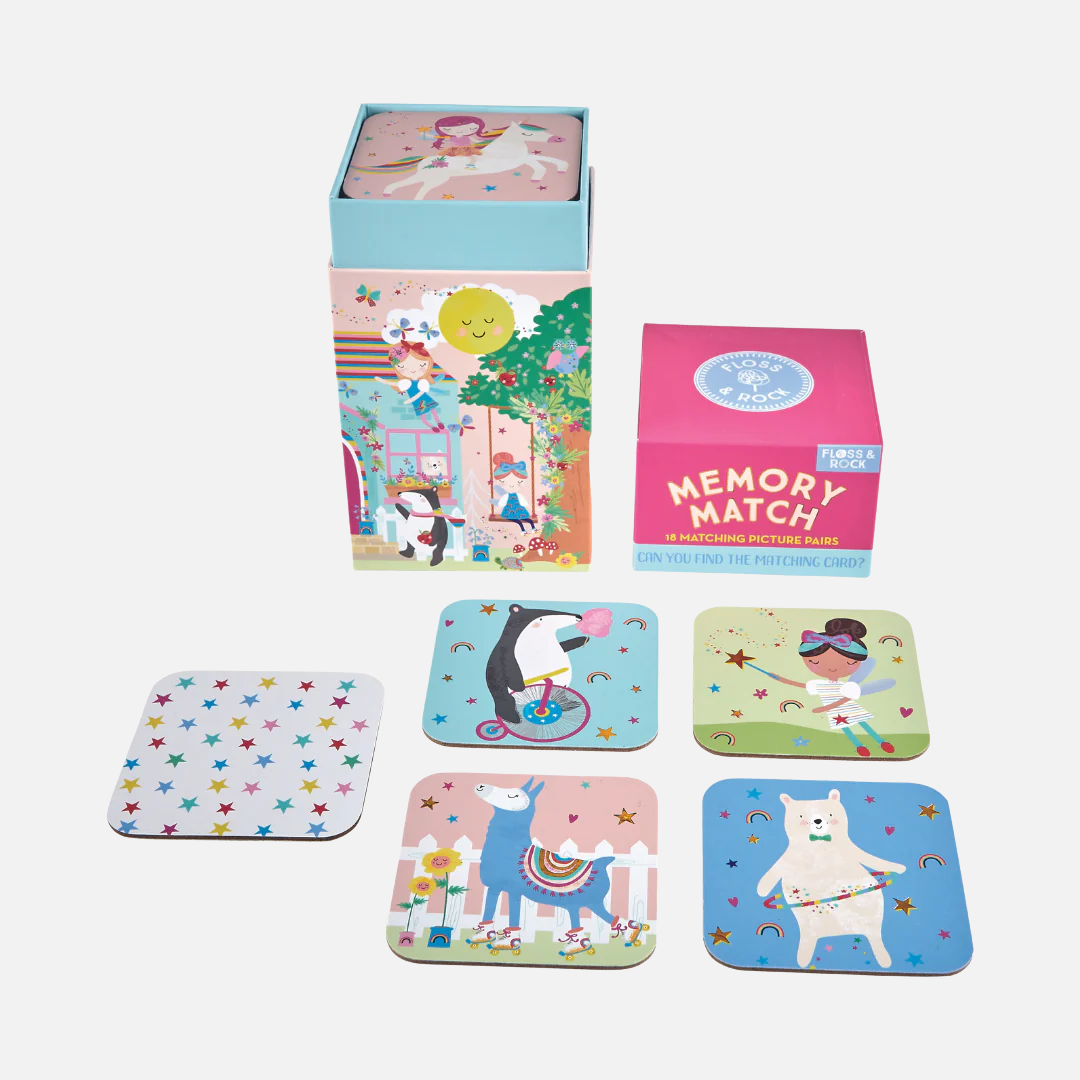 There’s so much fun to be had with this Memory Match Game from Floss & Rock! 36 super cards stacked up in a lovely reusable case. These gorgeous cards are illustrated in our fantastic Rainbow Fairy design featuring fairies, unicorns, rainbows, bears and more. With fabulous foiled details and lovely patterns, you’ll find 18 matching picture pairs in this perfect pick up gift!