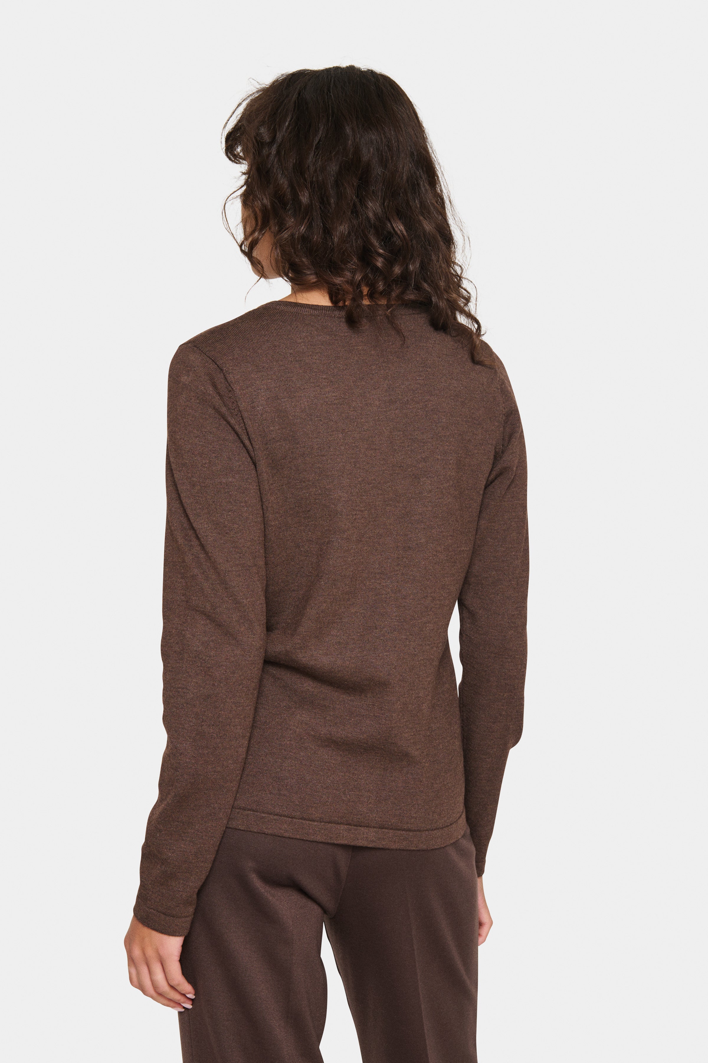 Experience the irresistible charm of the Mila round neck cardigan in Dark Oak Melange from Saint Tropez. This stunning brown cardigan boasts long sleeves, a round neckline, and visible button closure to the front. Its sleek, flattering fit and lightweight, flowy blended fabric make it a must-have for all seasons.