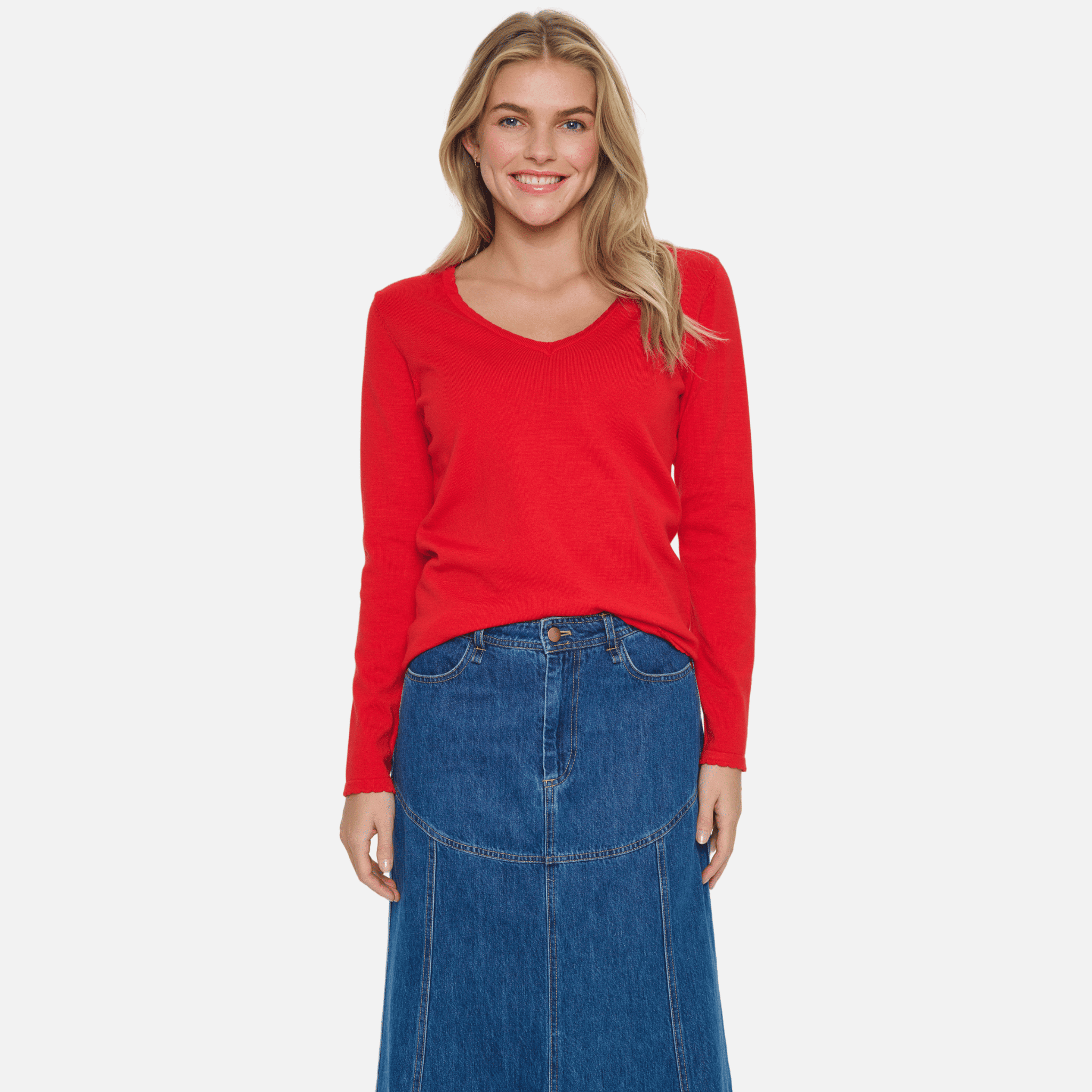 Mila Long Sleeve V-Neck Pullover | Flame Scarlet