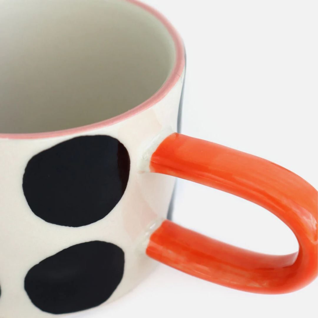 Part of the multi hearts range from Caroline Gardner this hand painted glazed stoneware mug will add personality and fun to your kitchen. Purchased individually or as a set, each mug features a bold print and contrast colour elongated handle and rim.
