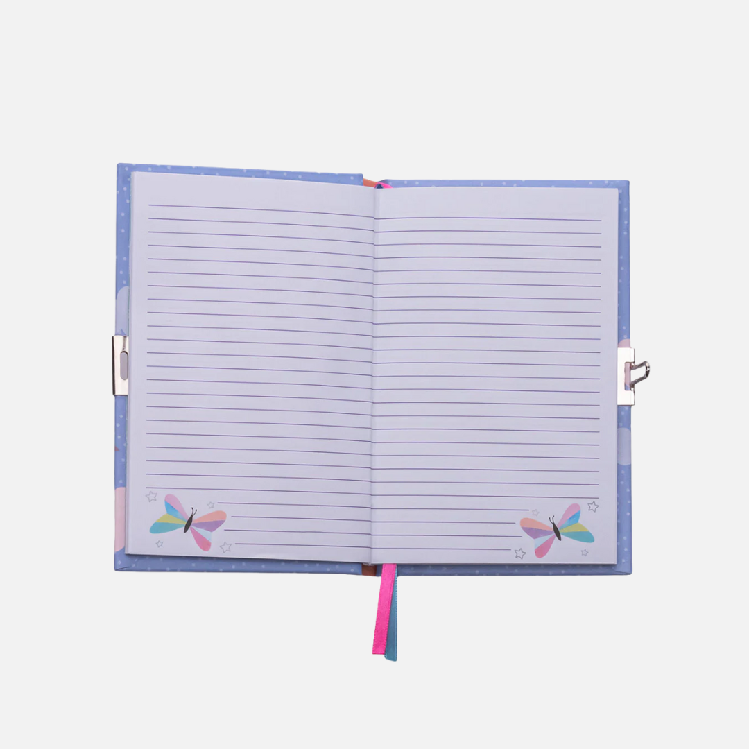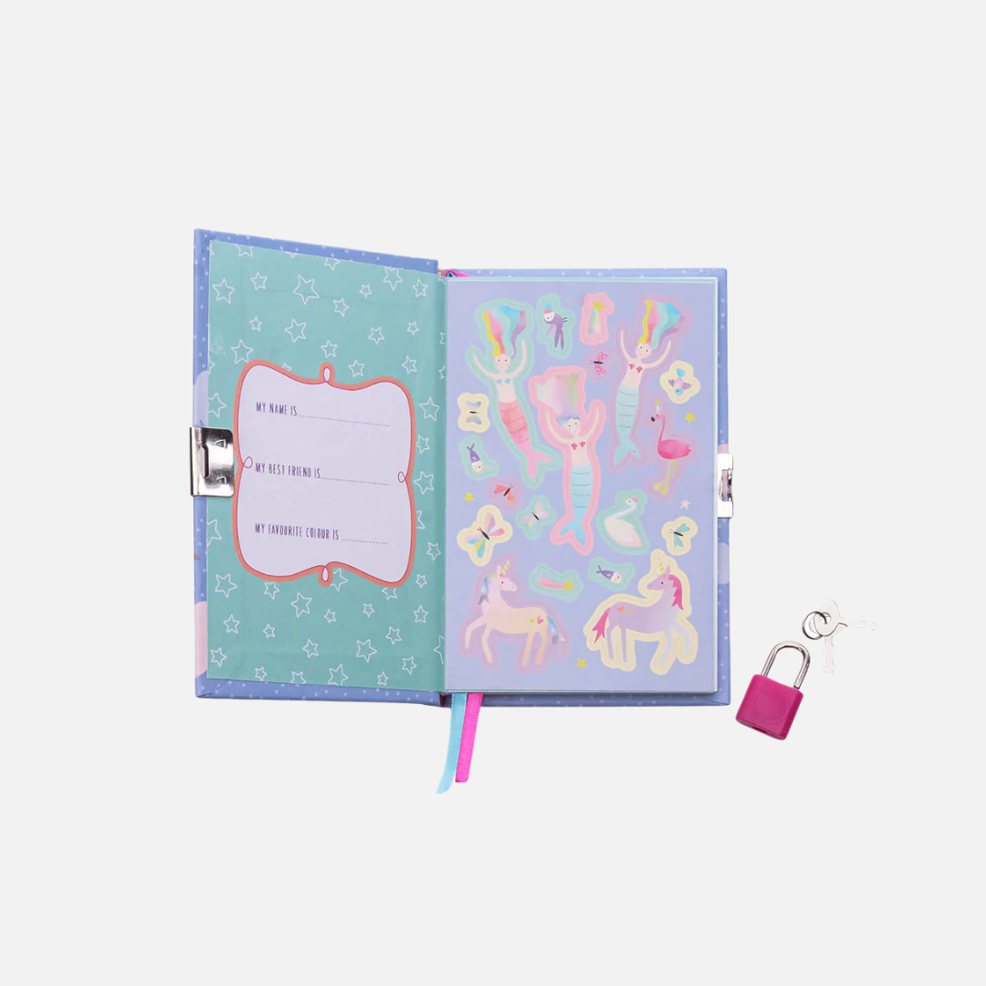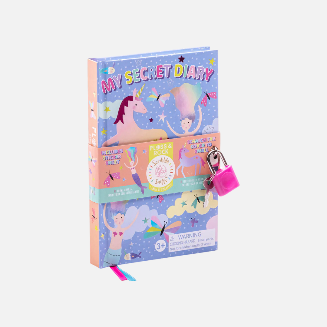 Wow…a SCENTED and SECRET diary. This Fantasy themed secret diary from Floss & Rock smells of Pineapple. Simply scratch the cover and you will reveal the scent. Includes a padlock and key AND a fun shaped sticker sheet with Mermaids, Unicorns and much more. There are multi colour ribbon page holders too. Pages are lined. Perfect for travel and taking out and about.