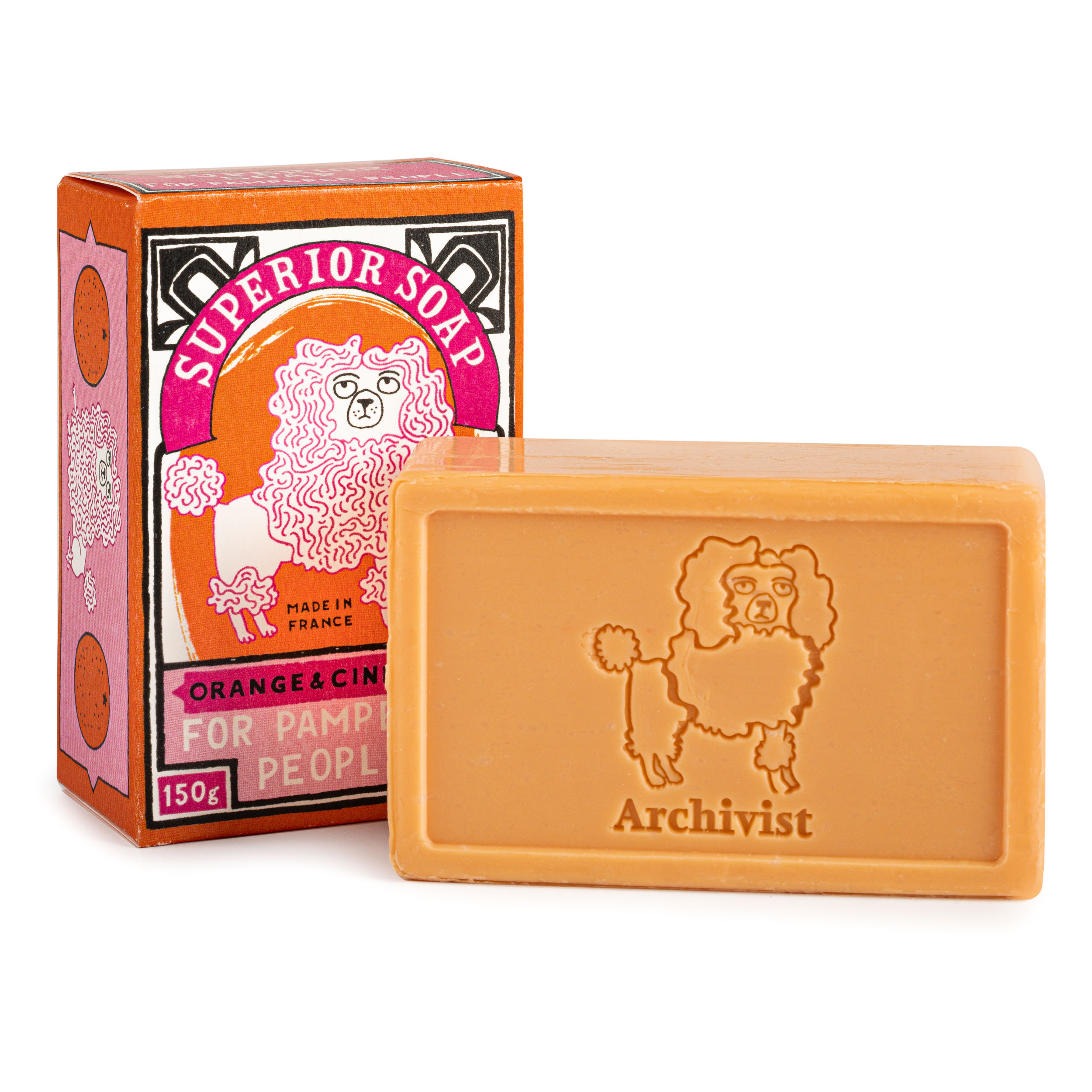 Archivist Gallery has teamed up with an incredibly talented and nose-trusted soap maker in the dreamy land of Provence, France to bring you Savon d’Archivist (catchy right?!). From lovely lemon, warming orange and cinnamon and the escapism of Provence in an intensely scented soap. Packaged in their beautiful letterpressed elephant design and their wonderfully bonkers obsession with poodles! This soap makes a beautiful home addition or perfect gift.