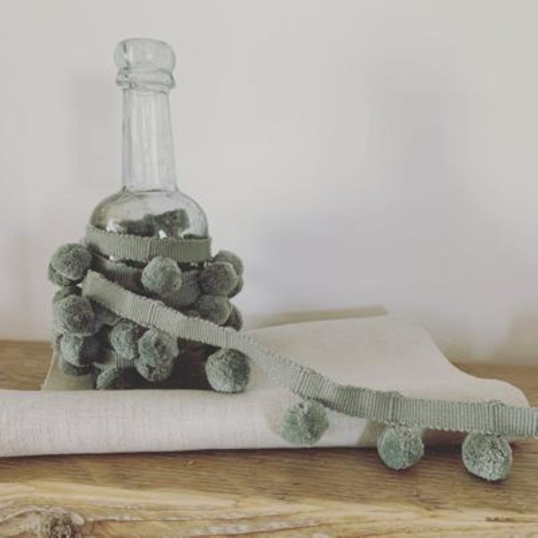 The pretty Pom Pom trimming from Olive & Daisy is perfect for trimming cushions, curtains, blinds, home accessories or craft projects. This trimming comes on matching braid and is available in 14 colourways to complement their gorgeous range of linen fabrics.