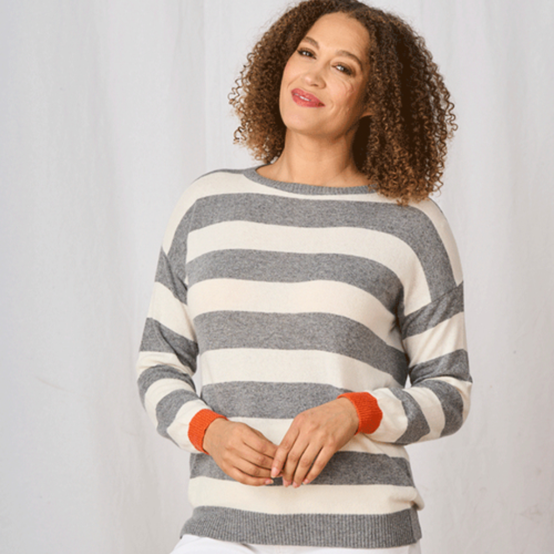 Reese Broad Stripe Jumper | Mid Grey, Ivory & Orange
