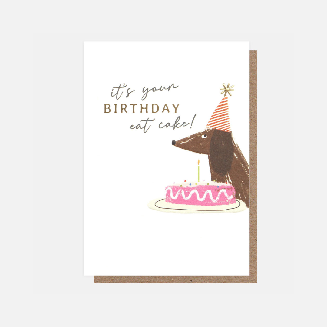 Sausage Dog With Cake Birthday Card