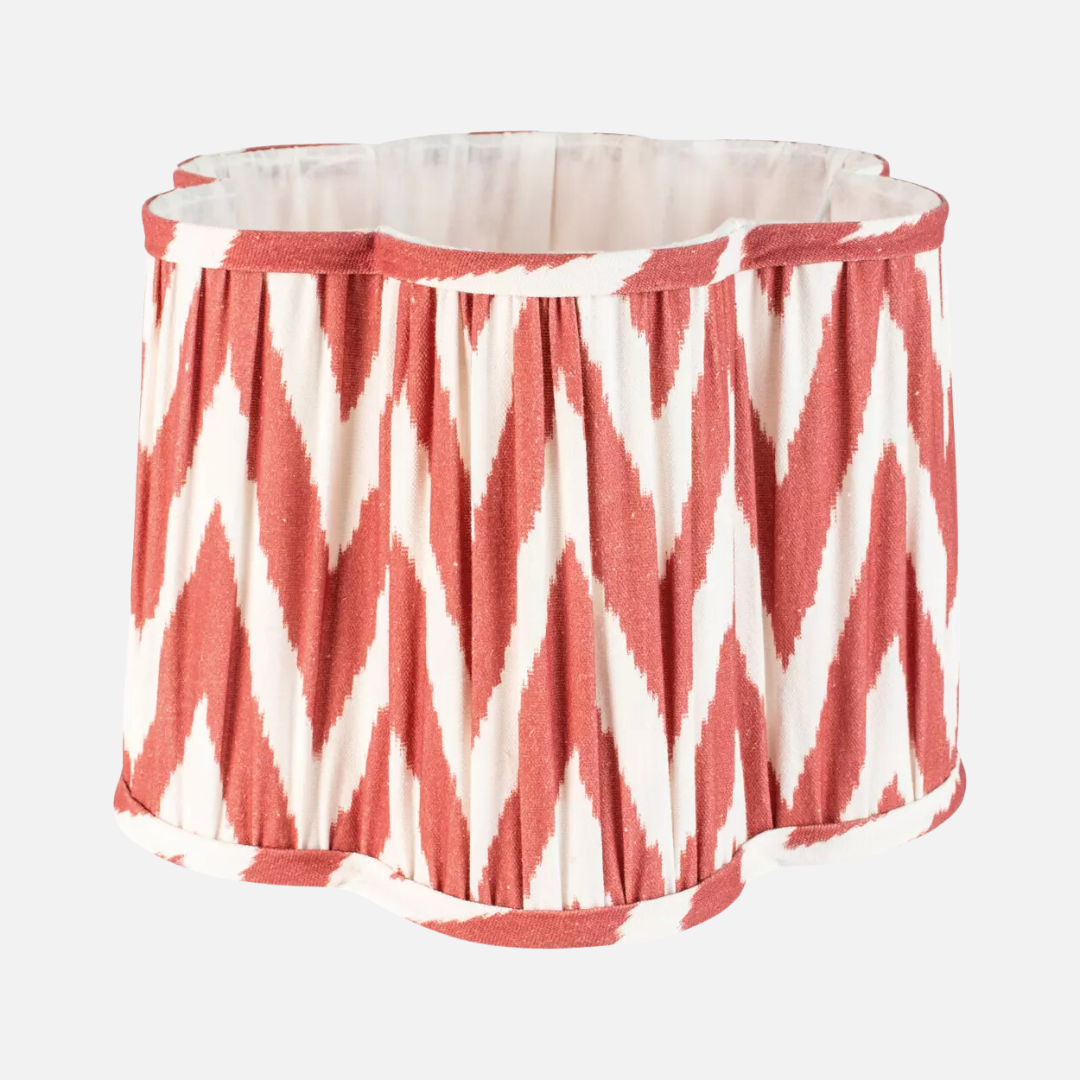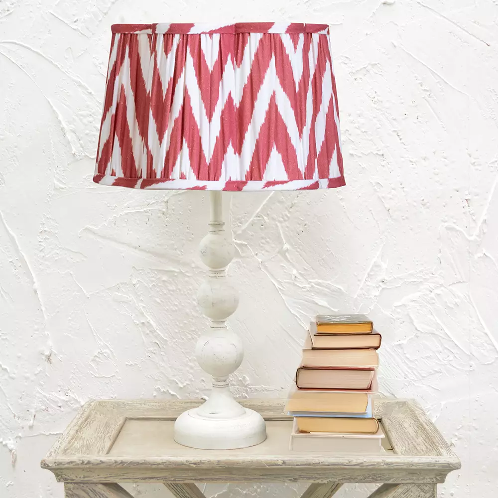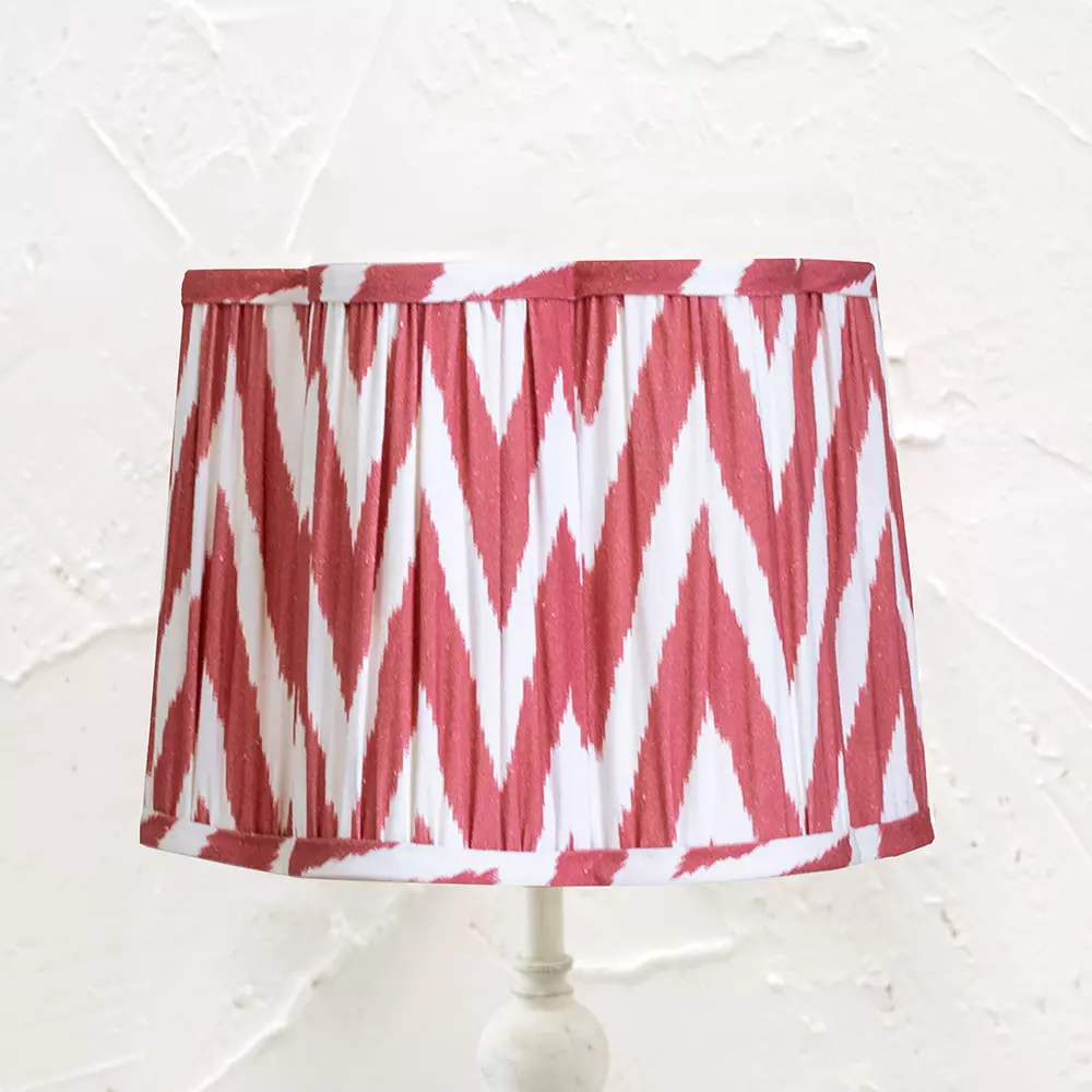 Add a touch of elegance and sophistication to your home with this exquisite pleated cotton lampshade by Grand Illusions. Crafted to perfection, this lampshade features a charming scalloped shape, measuring 35 x 23 cm, and comes with matching trim that enhances the beautiful pink ikat design. Create a warm and inviting atmosphere with this lampshade, which seamlessly blends classic artisan techniques with a contemporary look. It's the perfect addition to any home decor style!