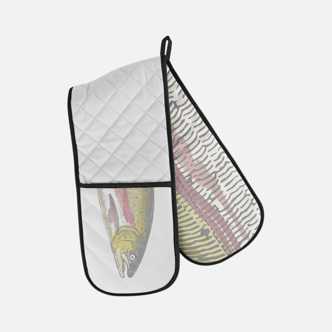 The Severn Salmon double oven gloves from Mustard & Gray are both practical and stylish. With a polyester thermal layer inside each hand pocket and on the reverse of the glove keeping you well protected. You will also find a loop that is handy for hanging up in your kitchen. These oven gloves make the perfect kitchen companion.